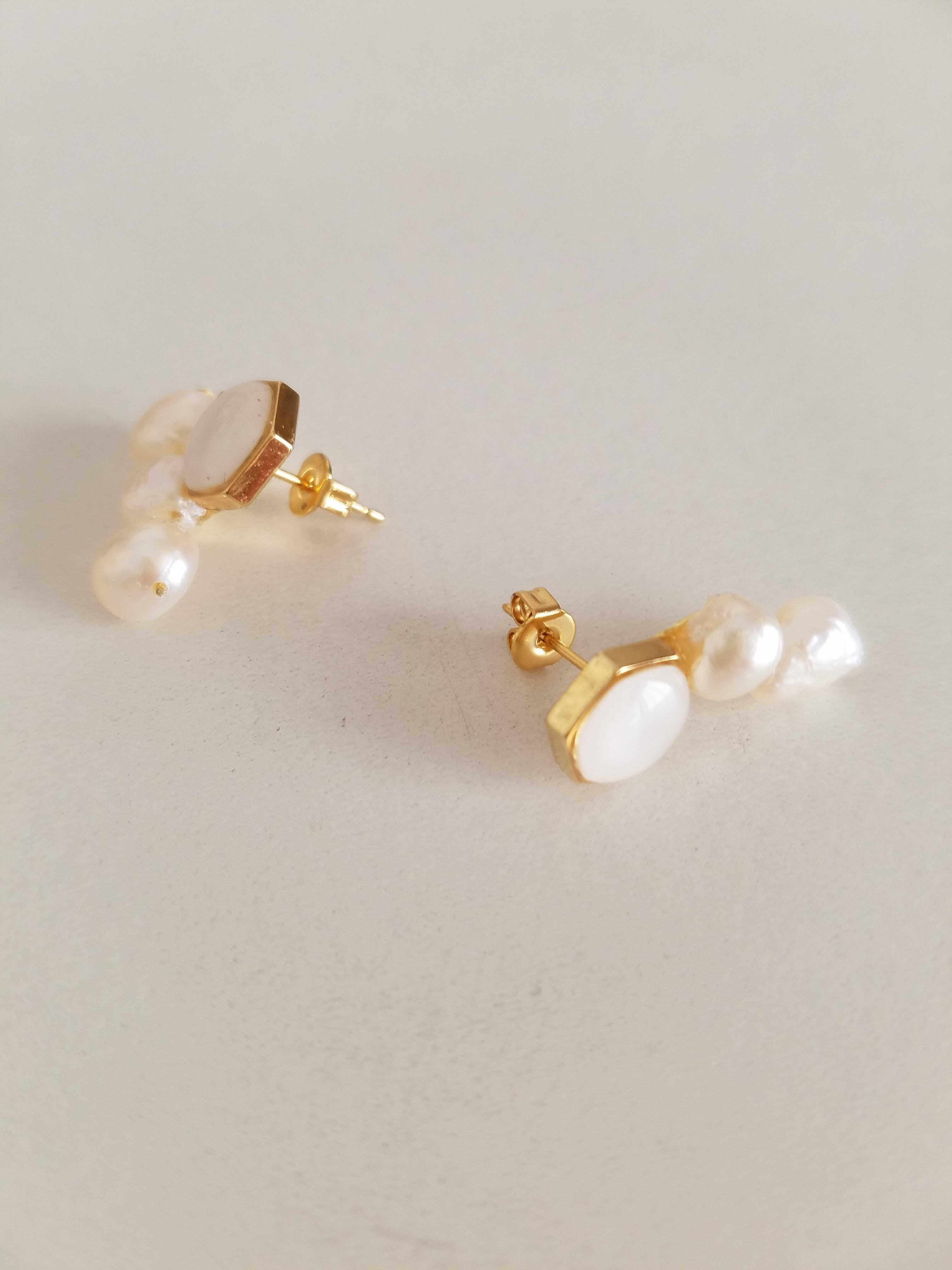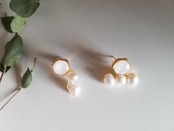 左右異なるデザインが目を惹くホワイトとゴールドが爽やかなピアス。