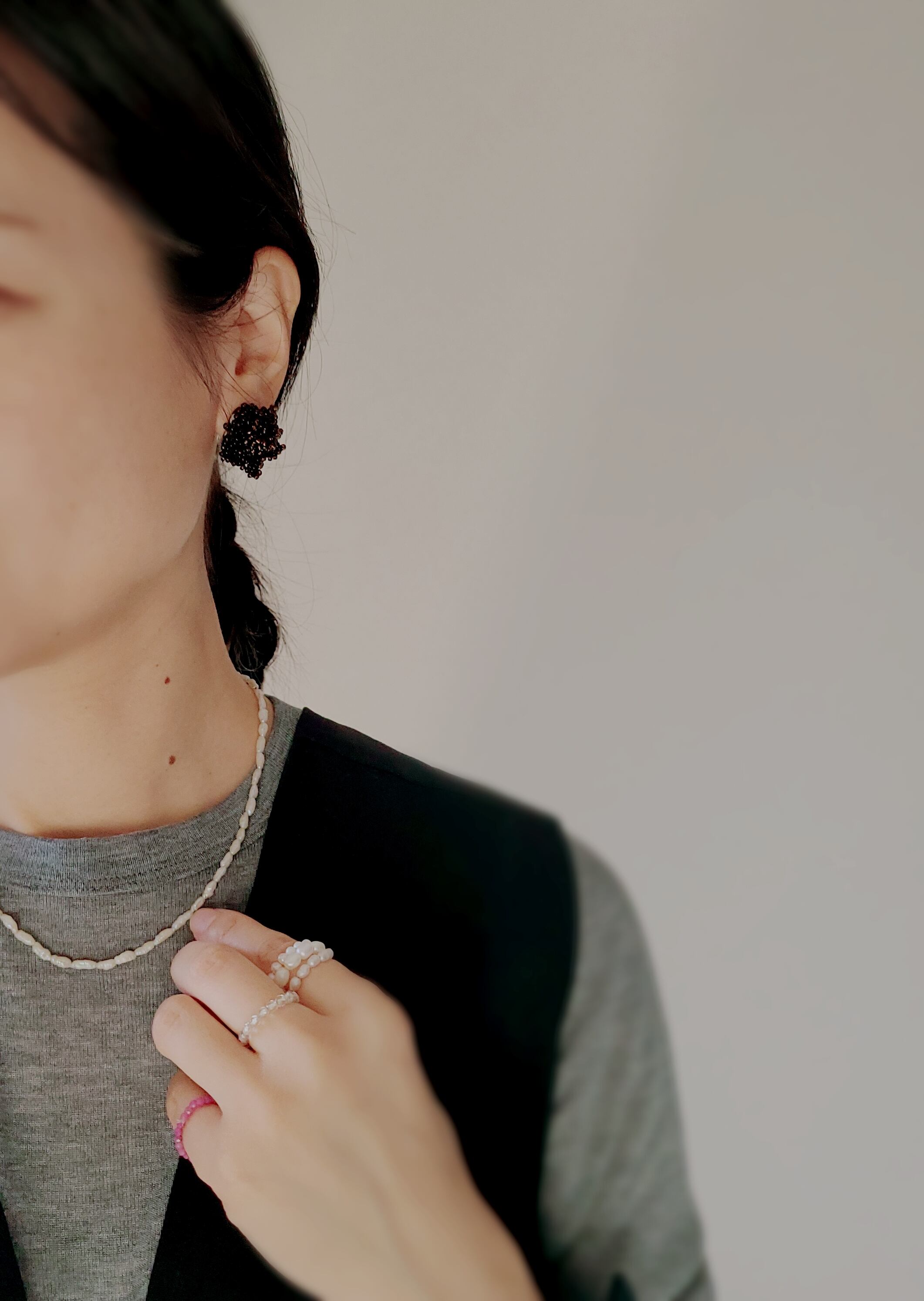 トルマリンと変わり淡水パールのネックレス(金属不使用)