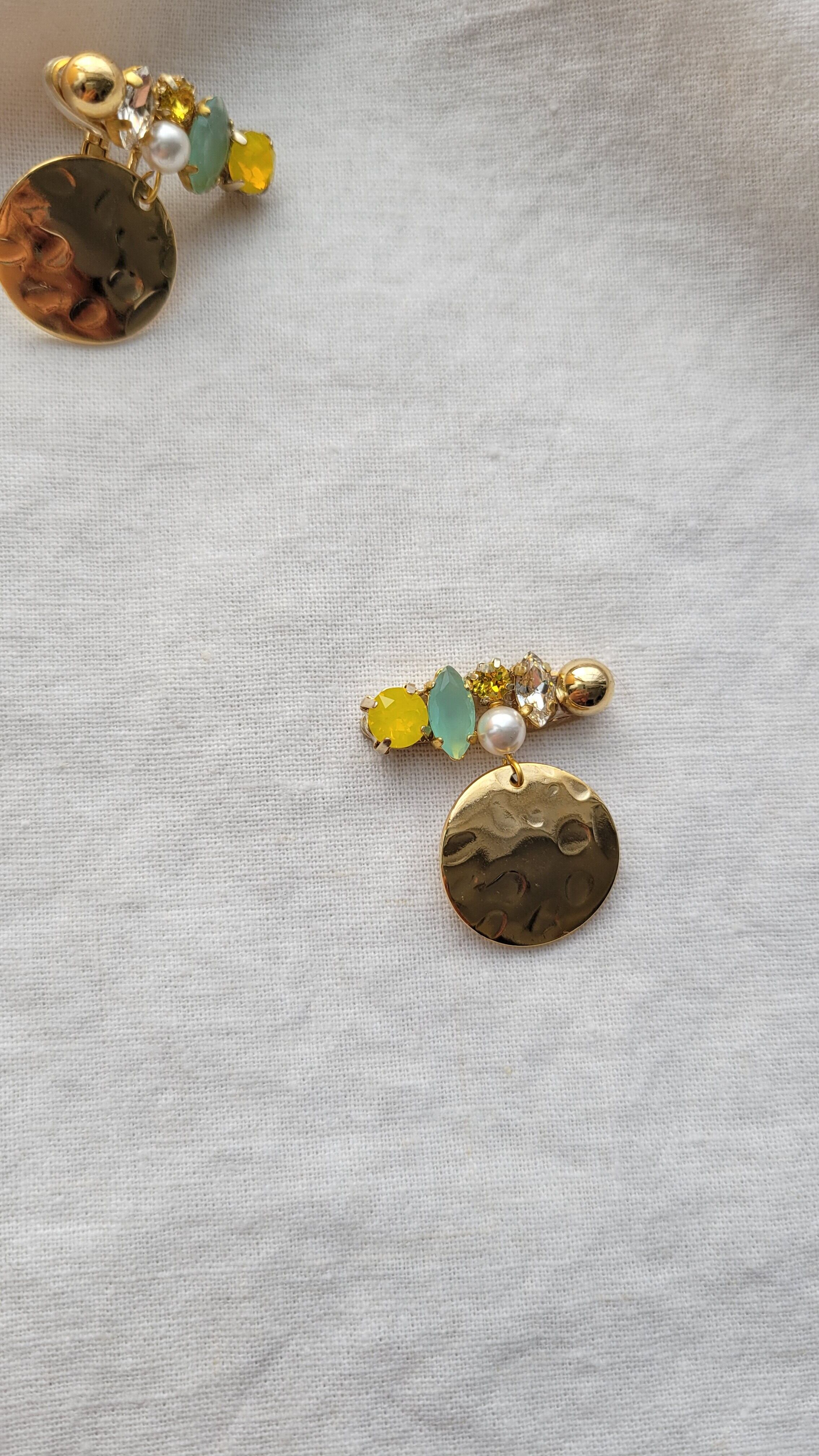 パンチングの入ったゴールドのモチーフが耳元で揺れて目を惹きます。