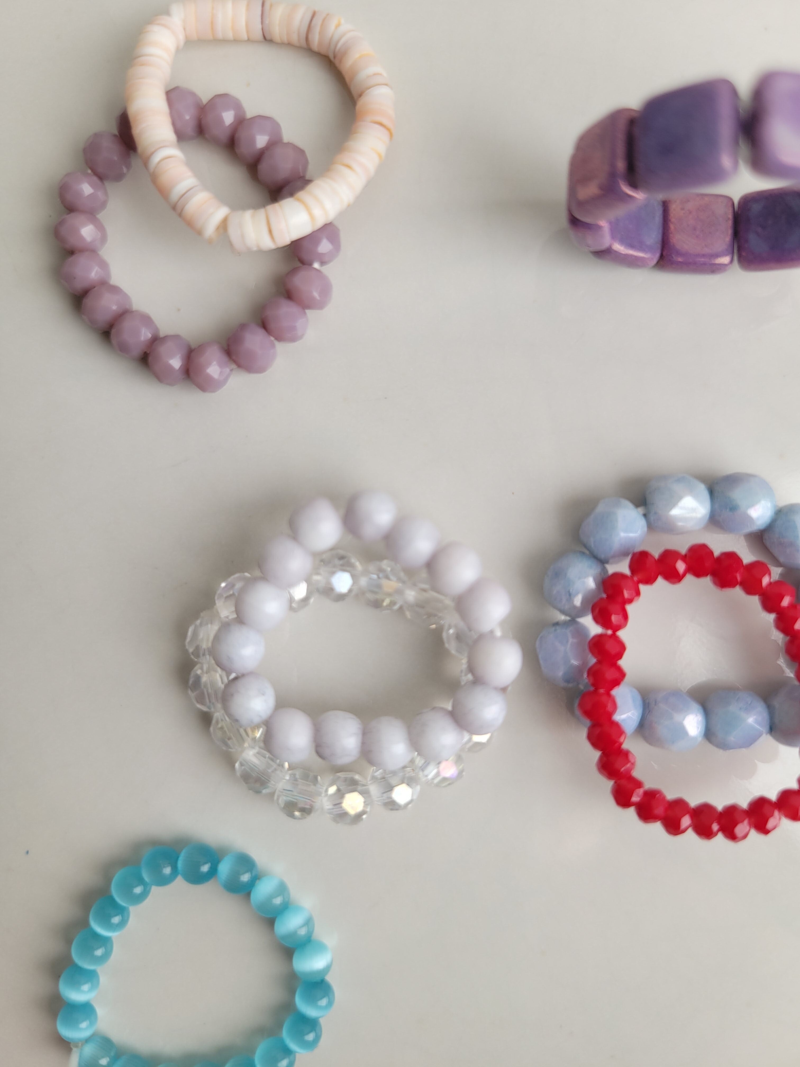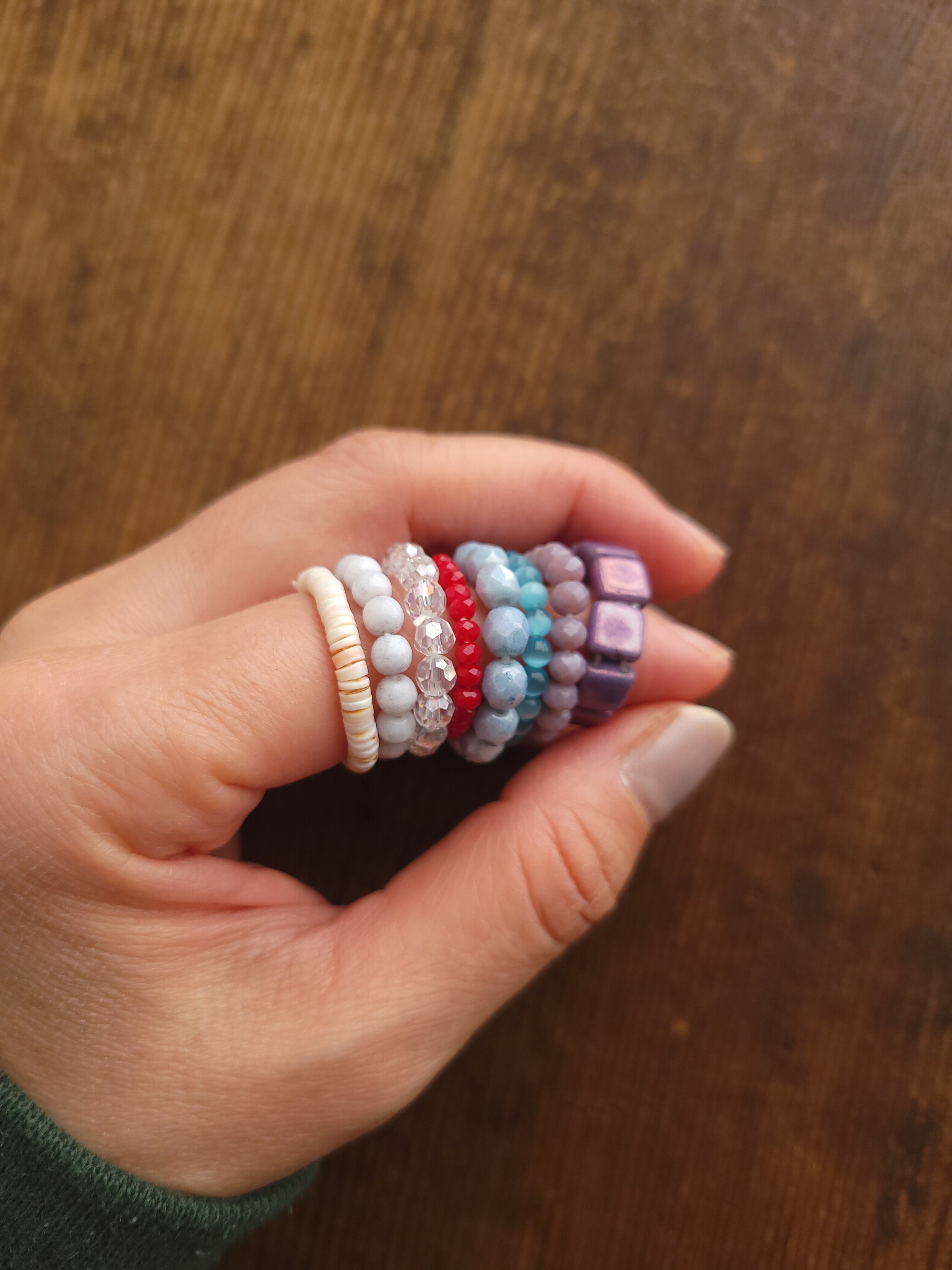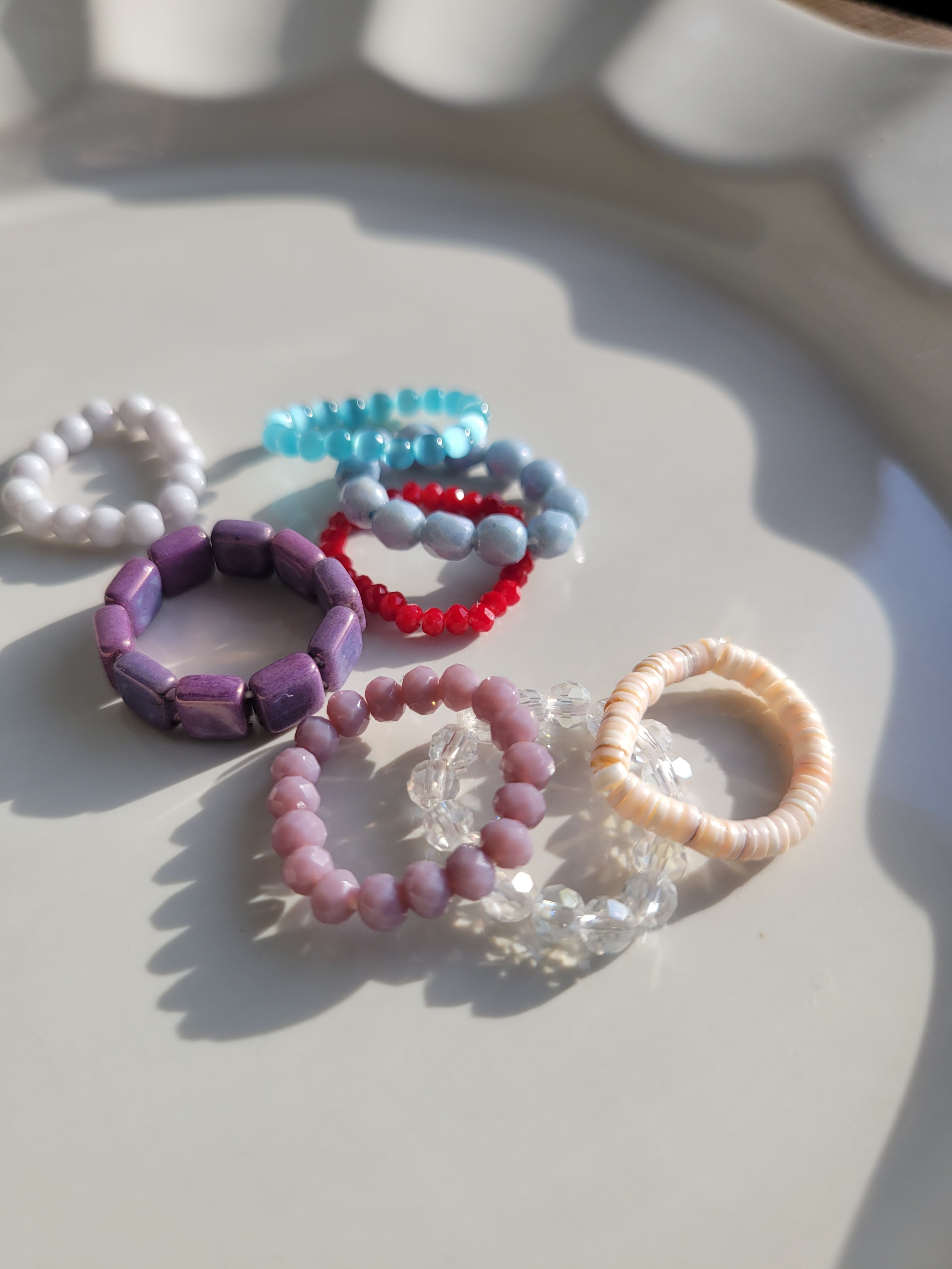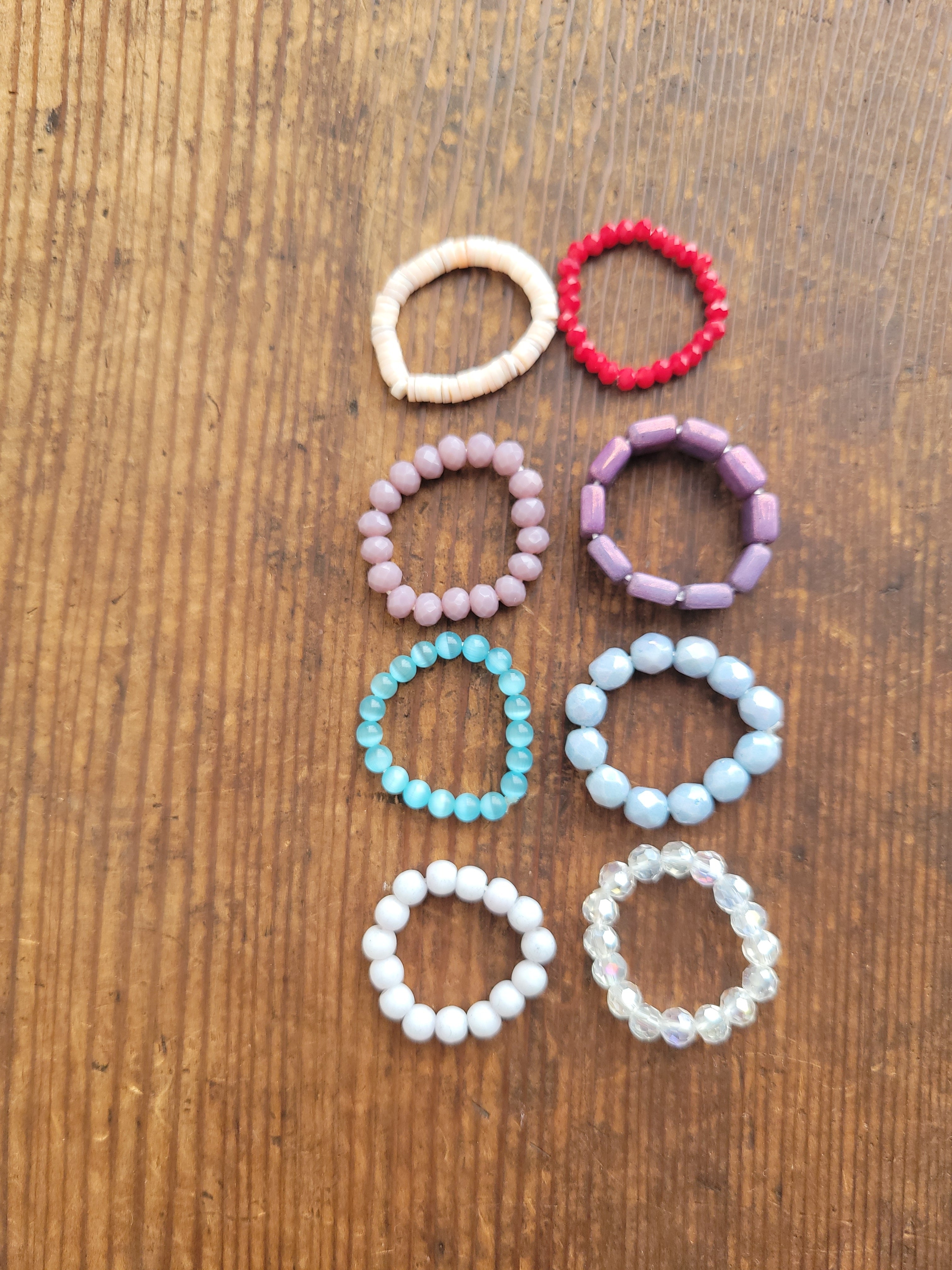 ビーズやシェル、石を繋いだリングです。