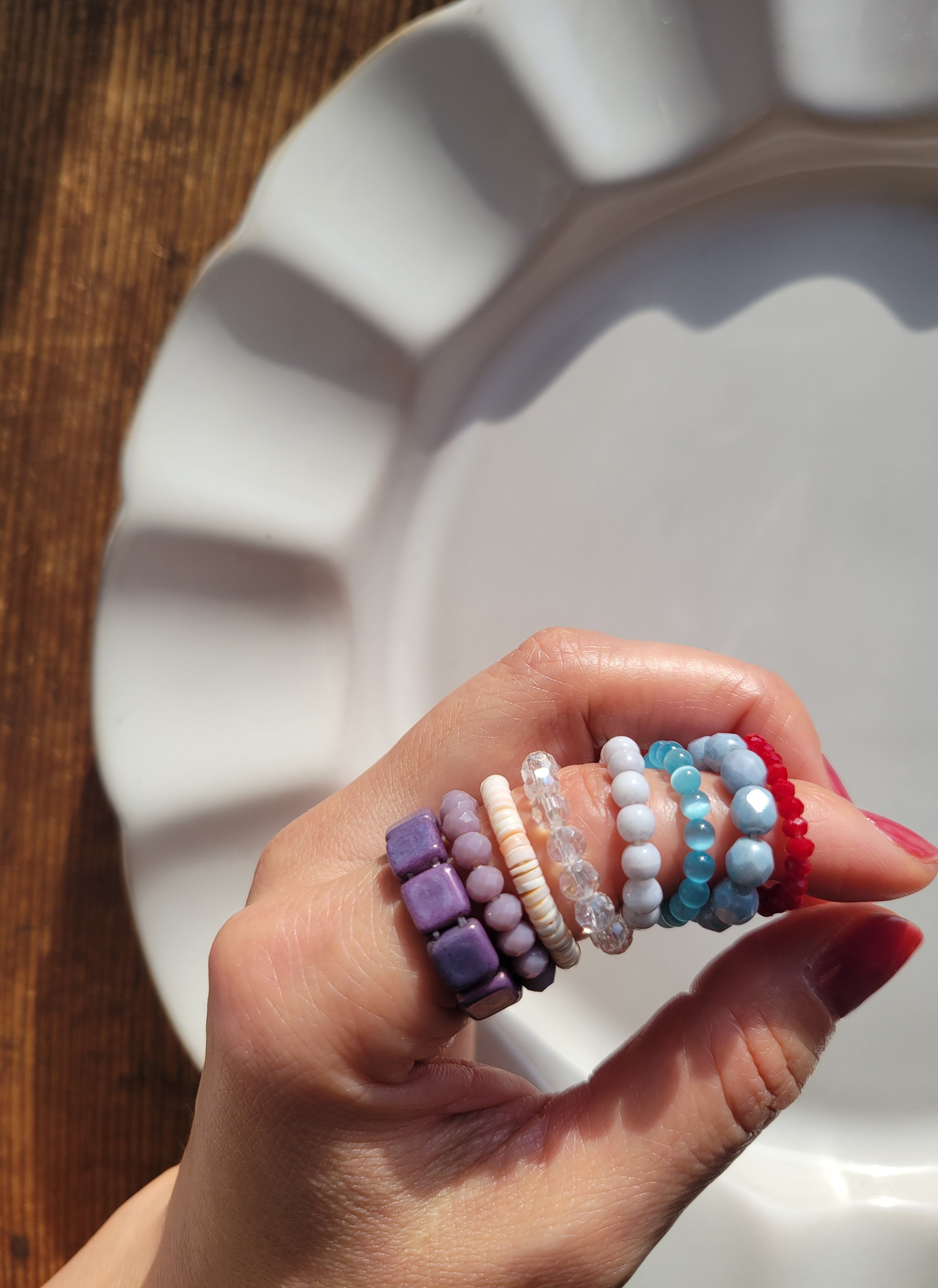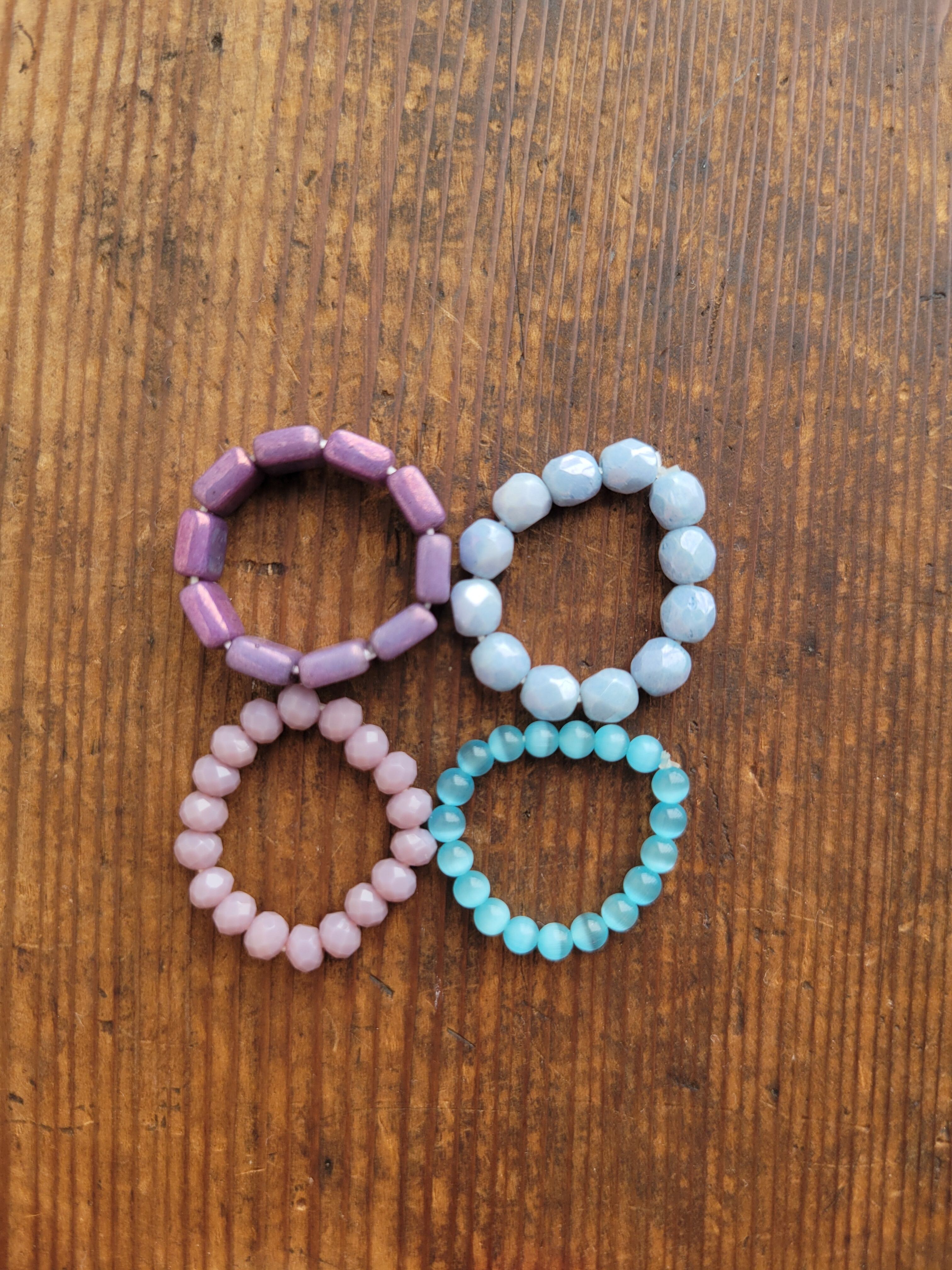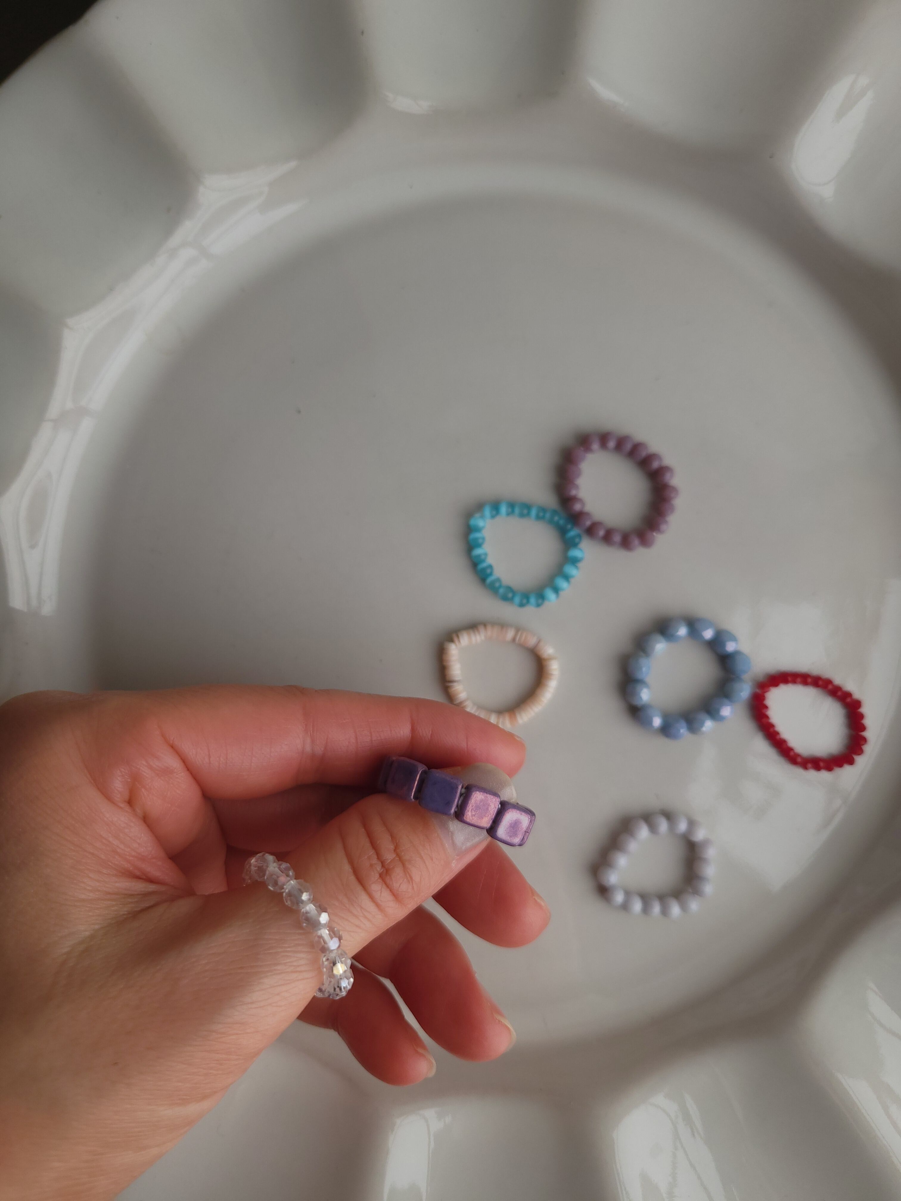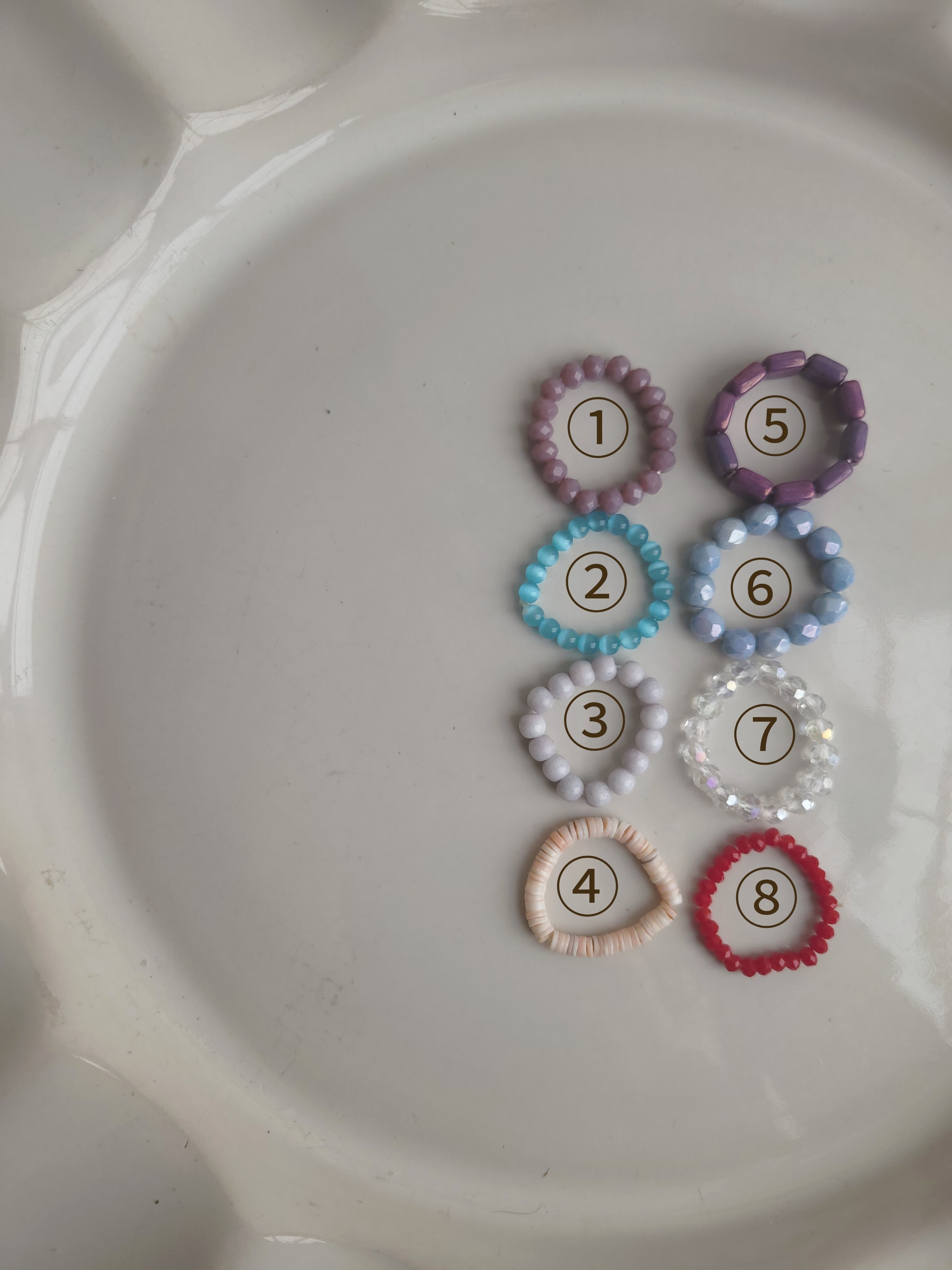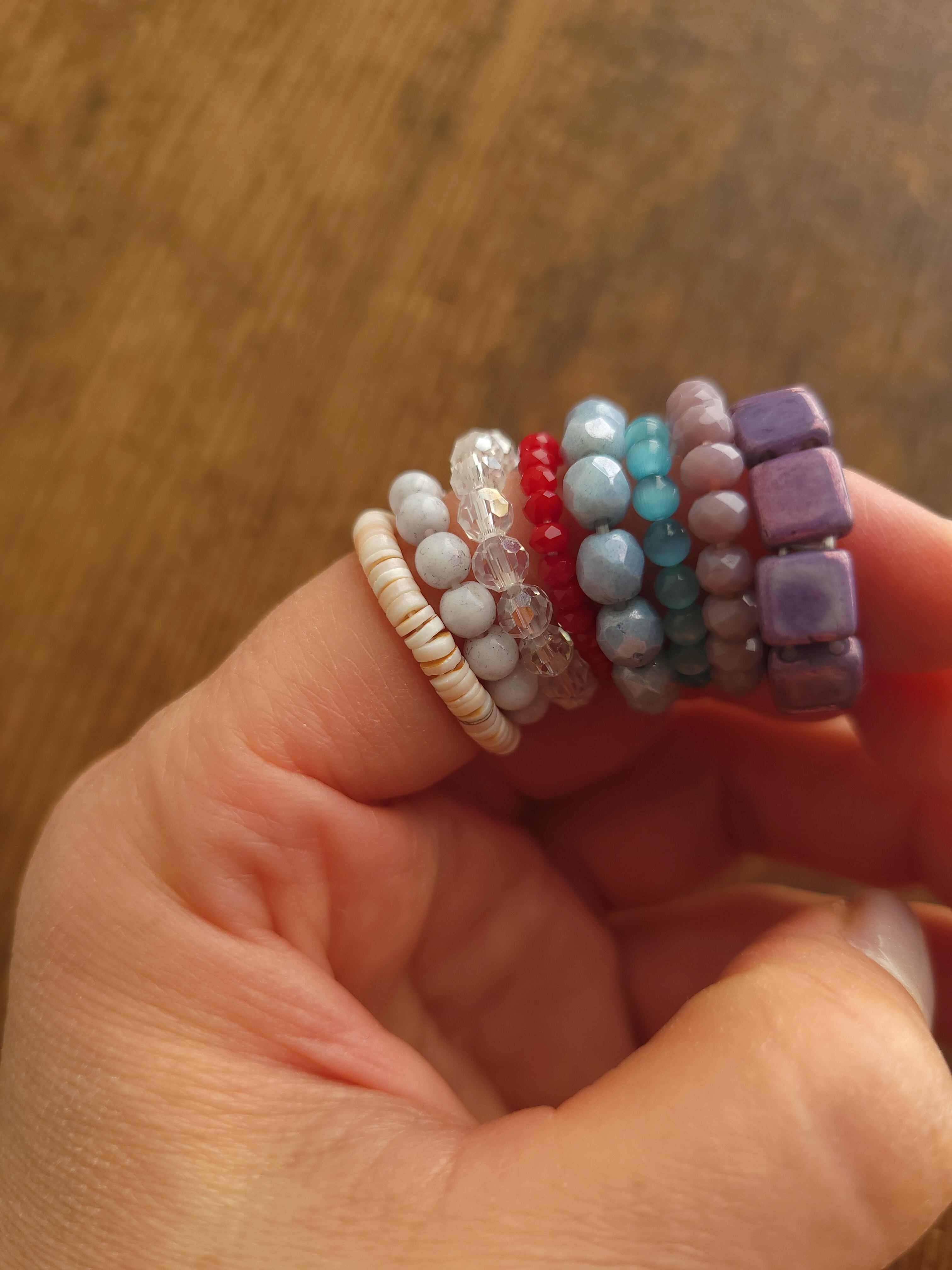 ビーズやシェル、石を繋いだリングです。