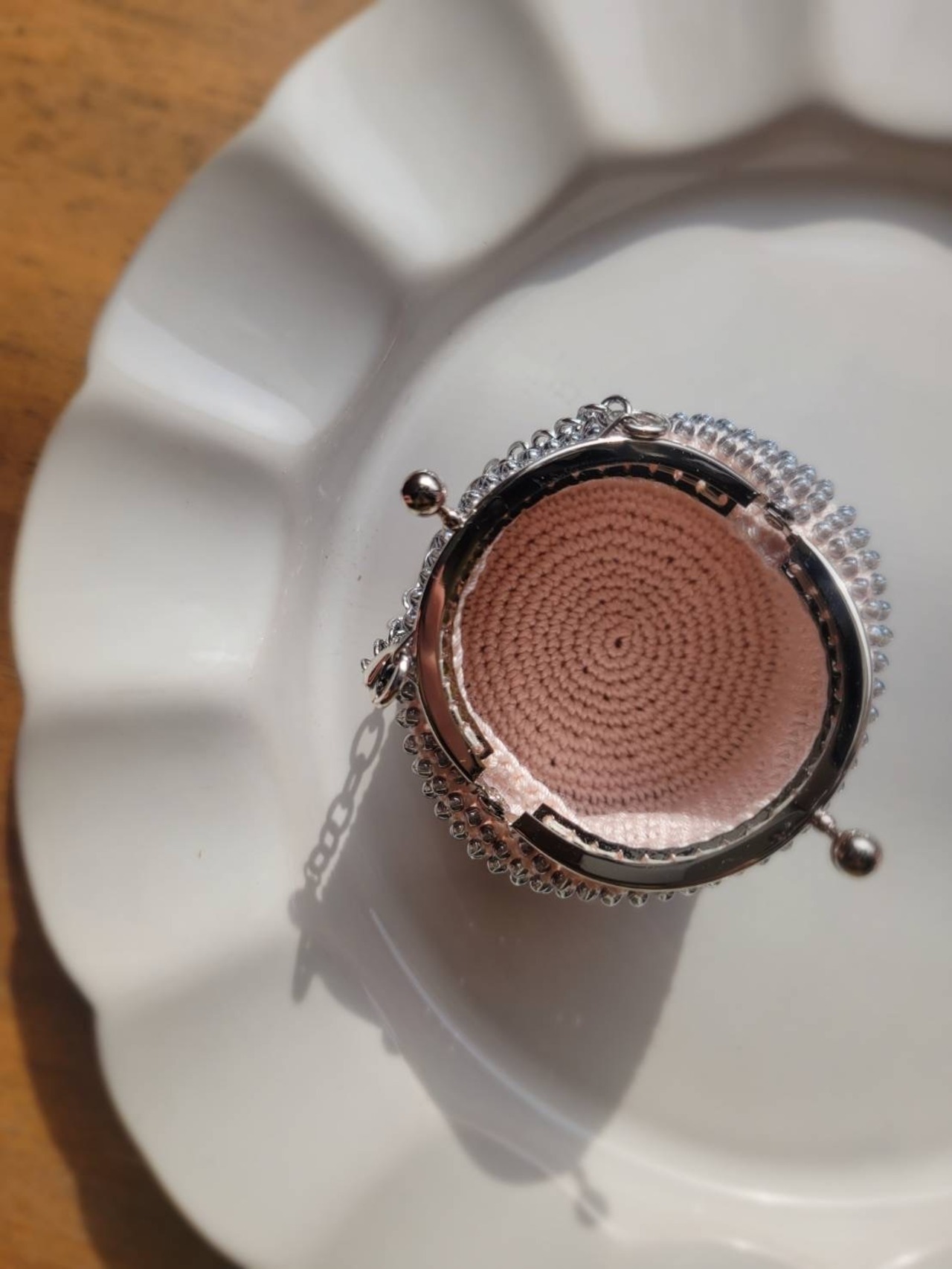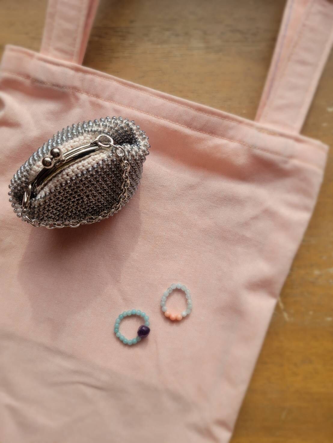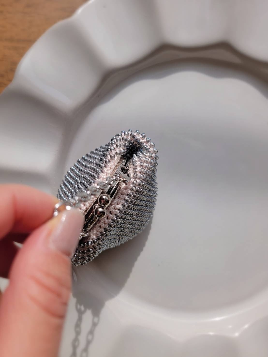 ピンク×グレー 一期一会のビーズがま口ポーチ 2026.2