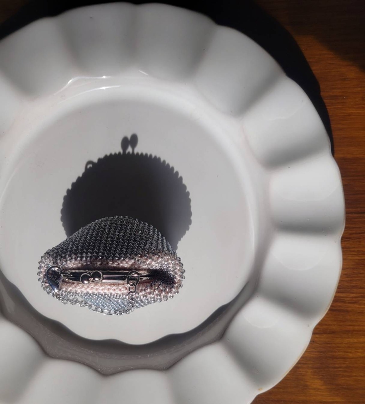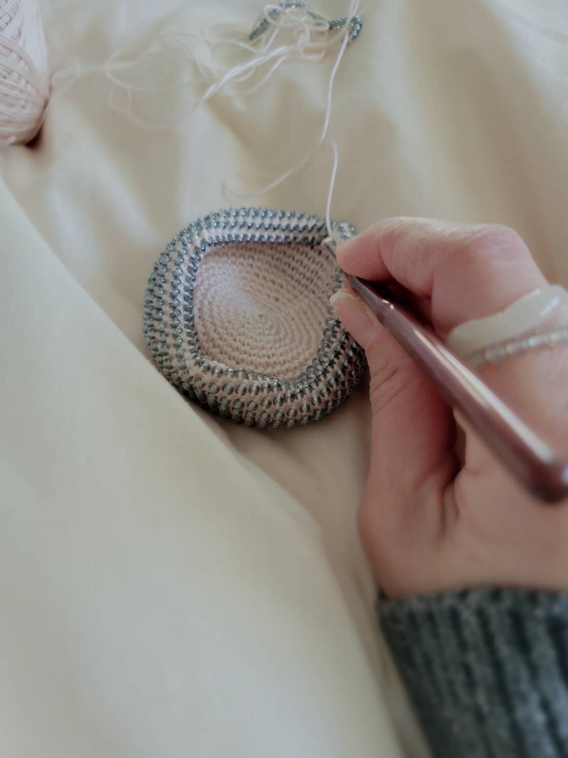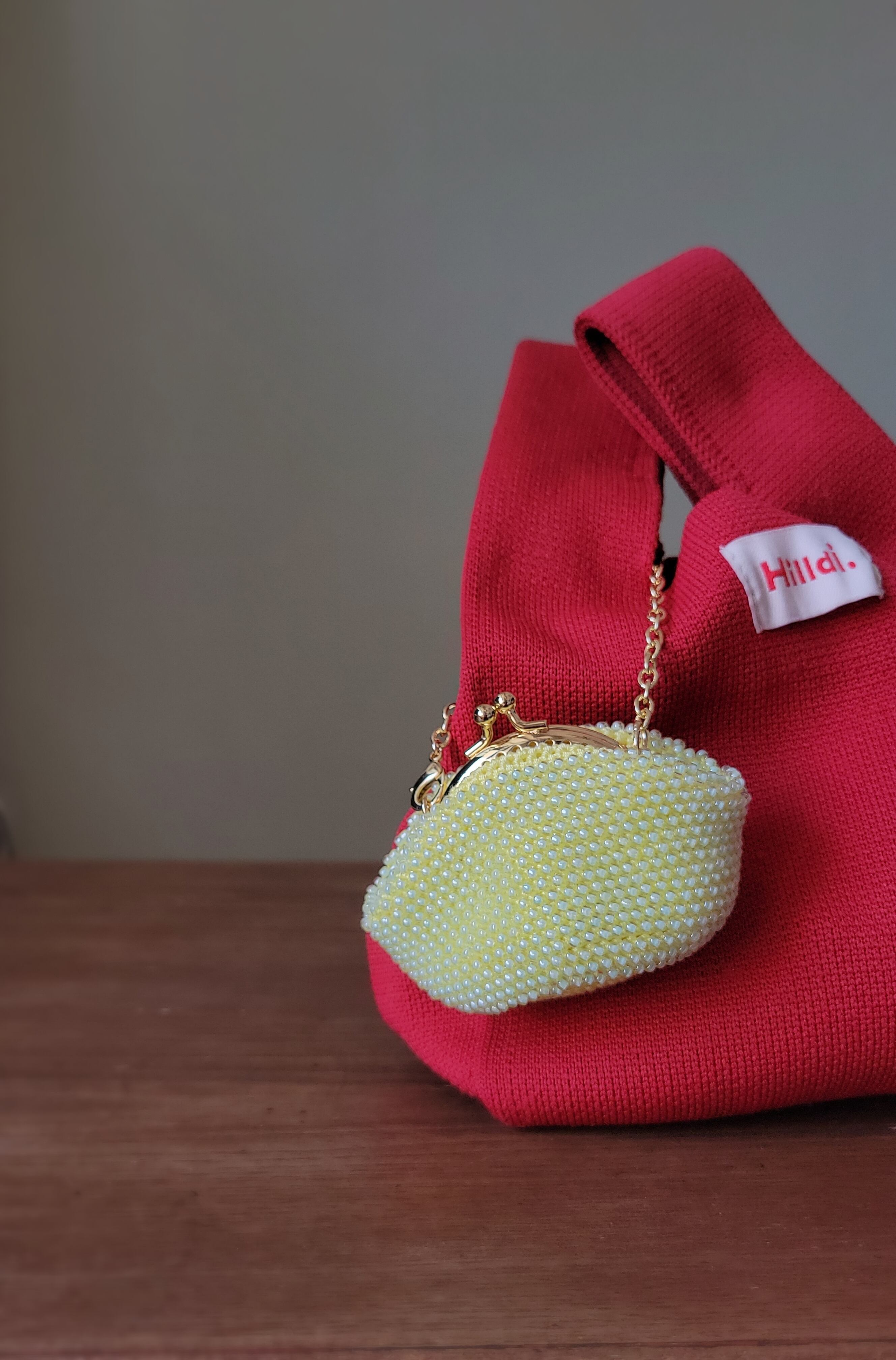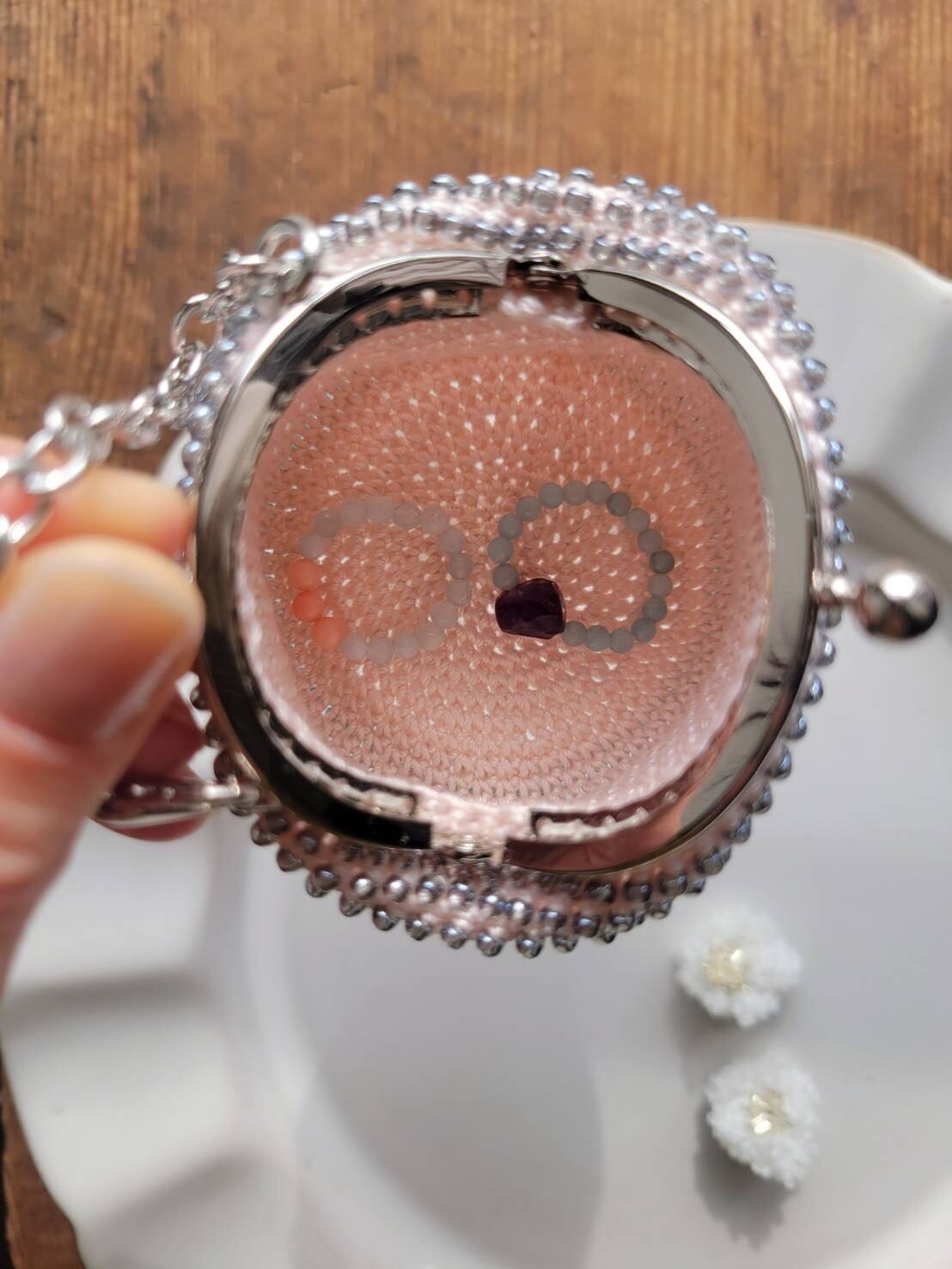 ピンク×グレー 一期一会のビーズがま口ポーチ 2026.2