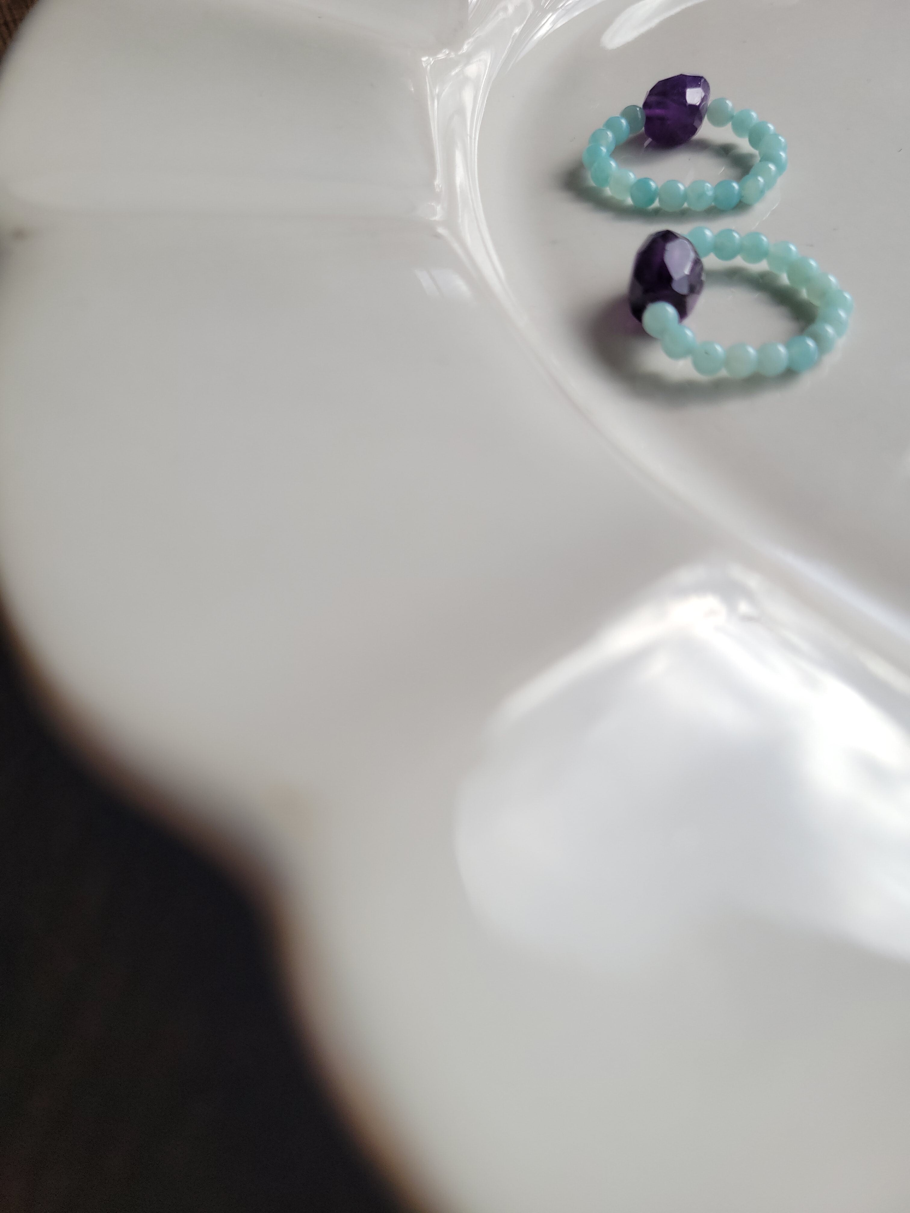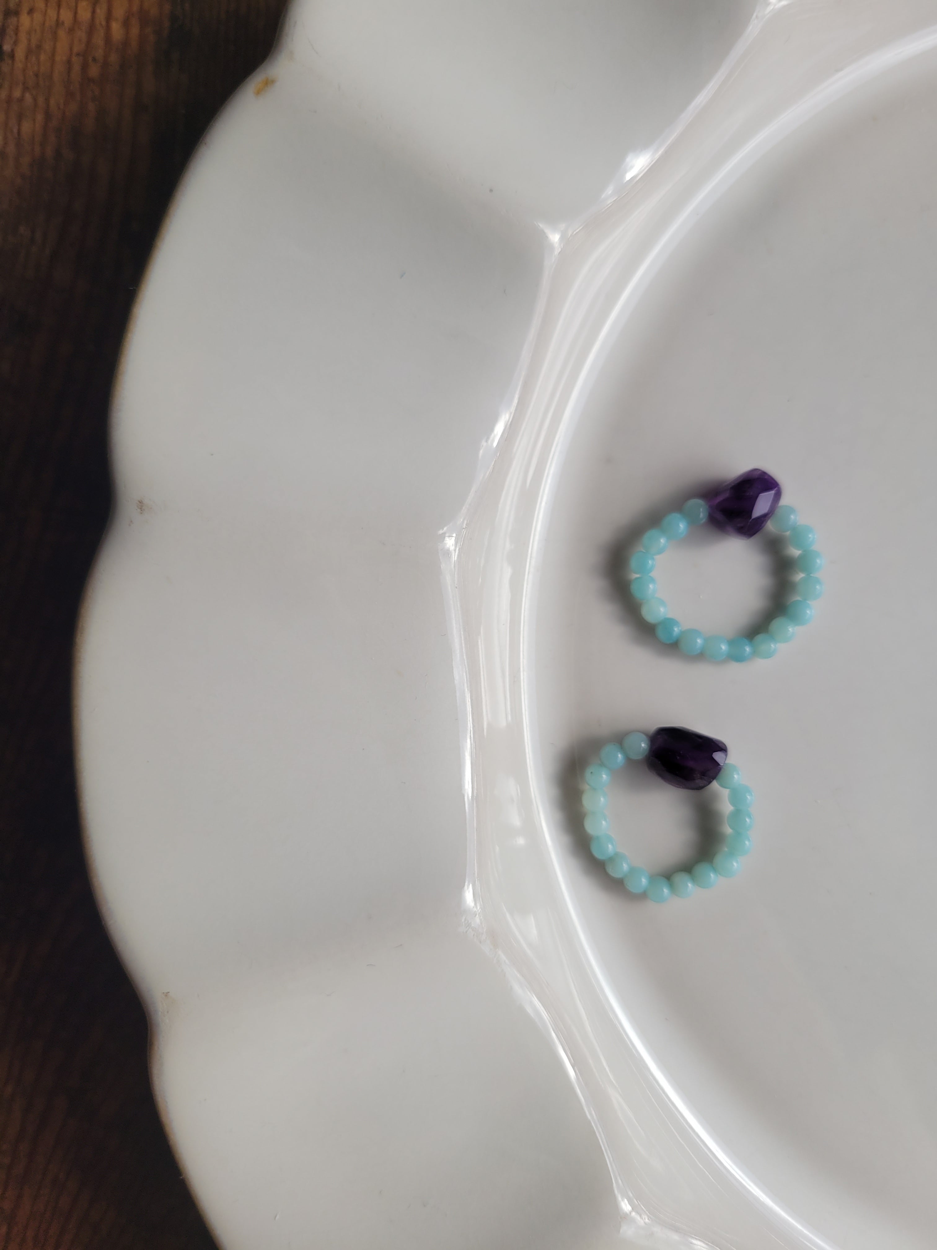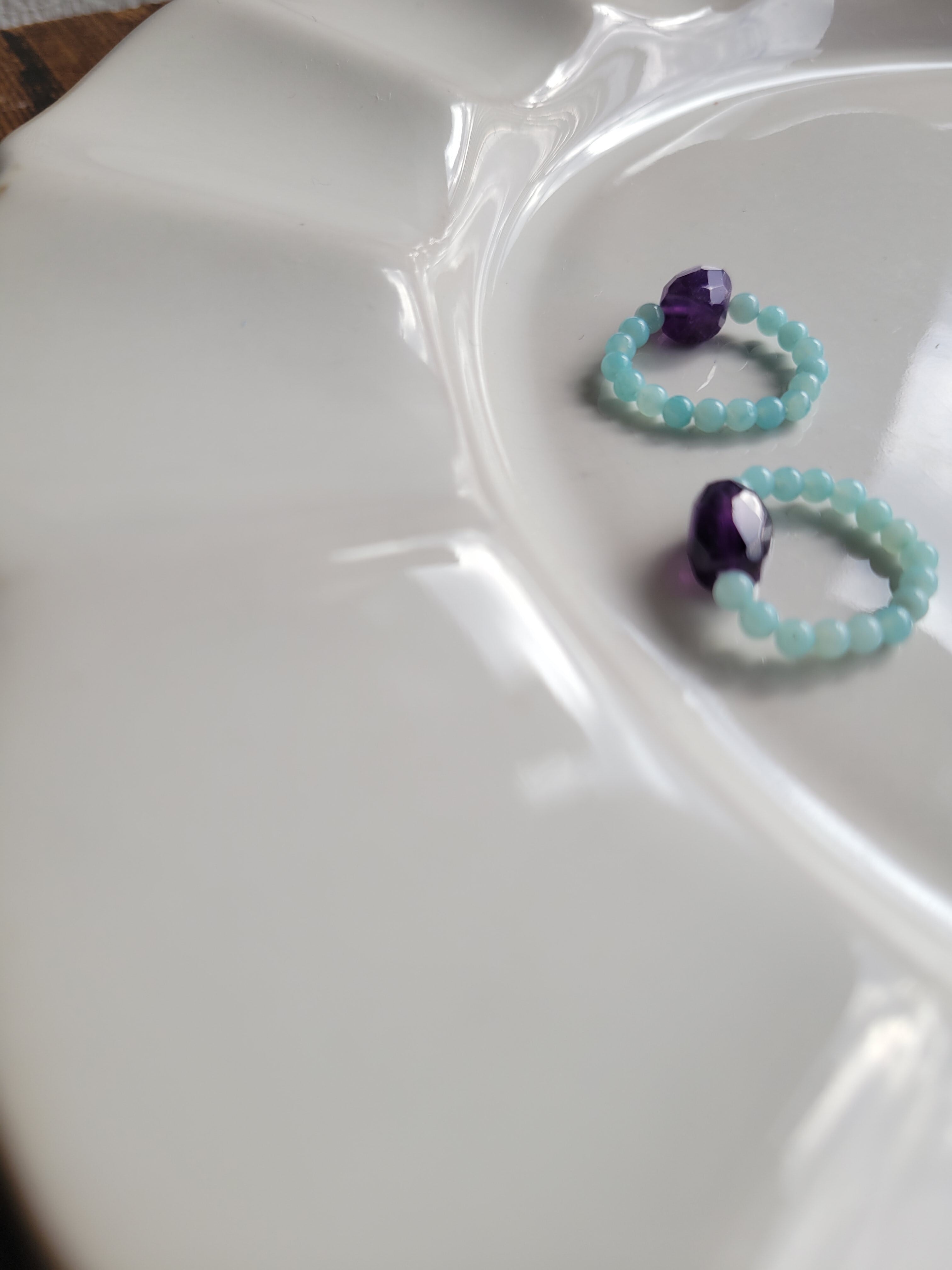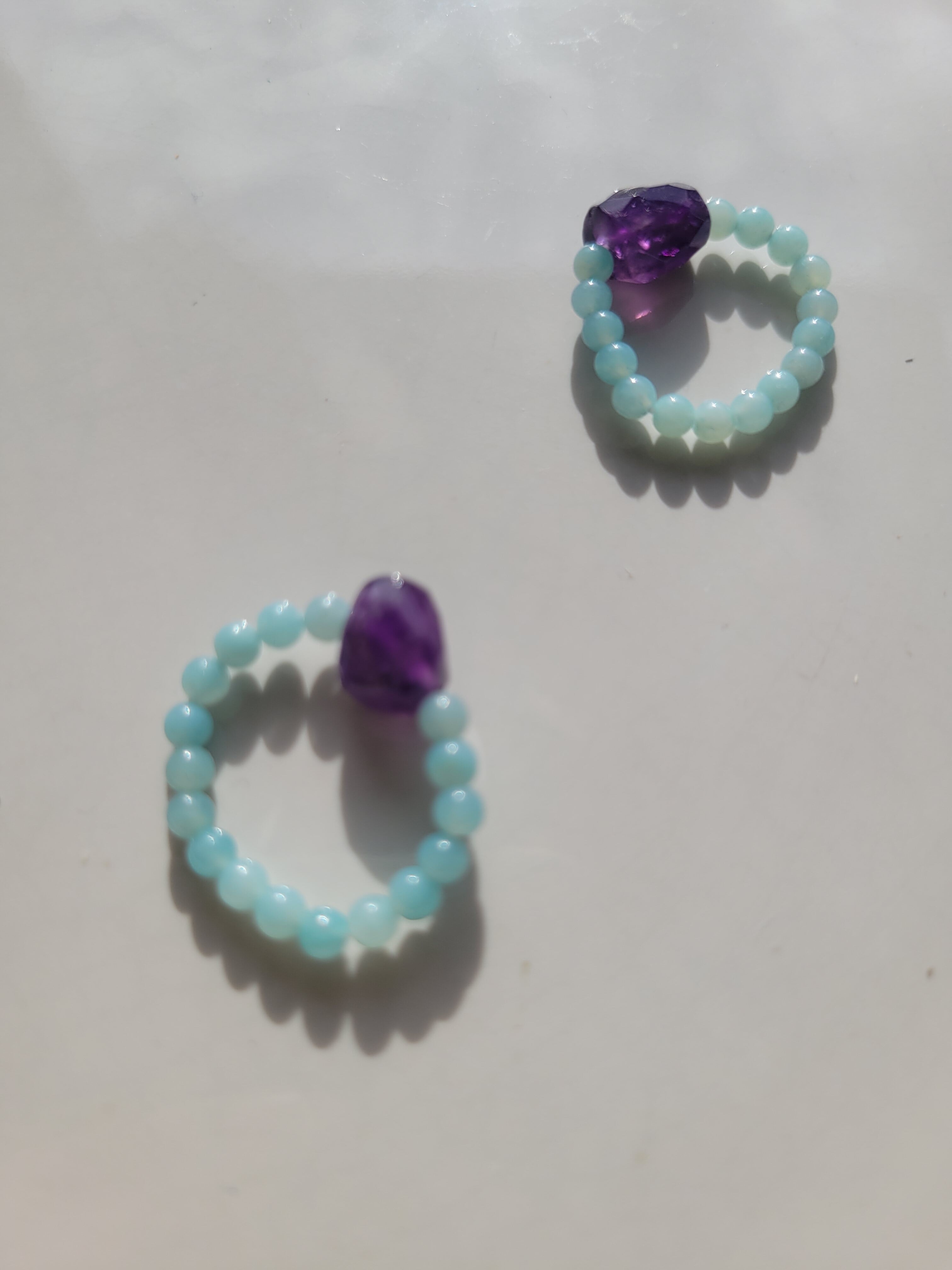 アメジストの紫とアマゾナイトのグリーンが