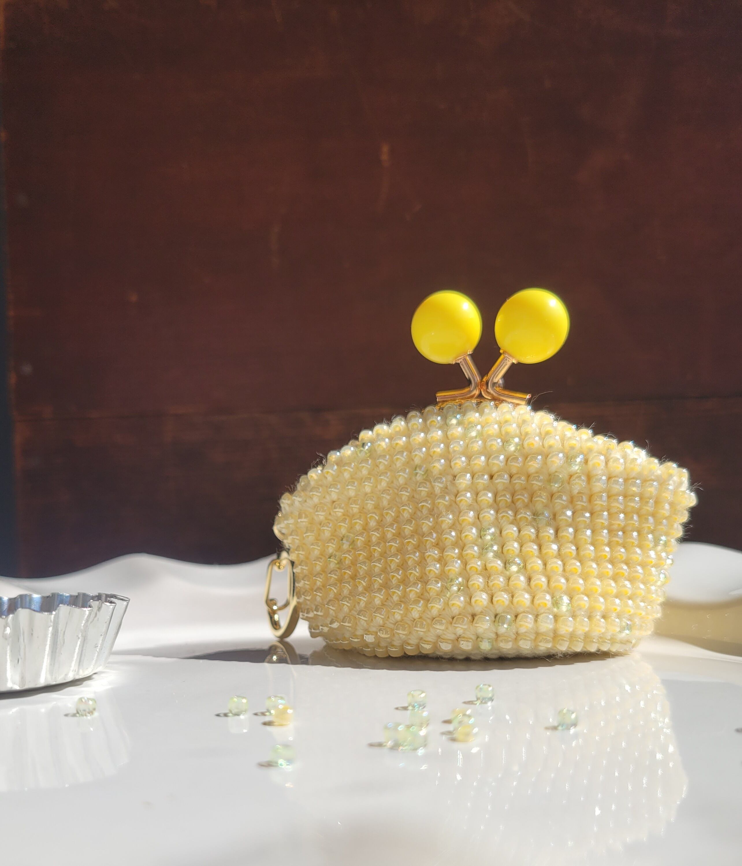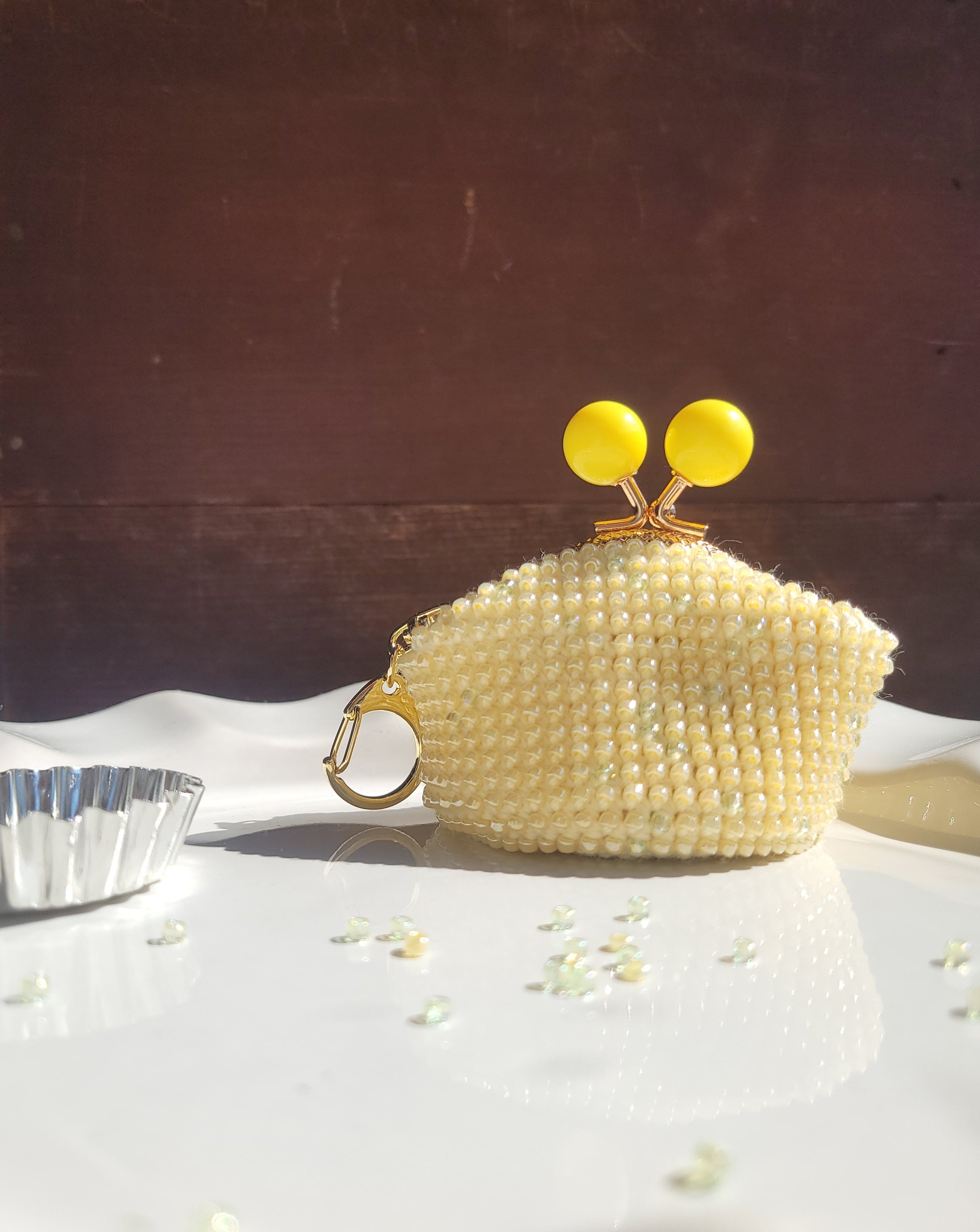 イエロー×グリーン 一期一会のビーズがま口ポーチ 2026.3