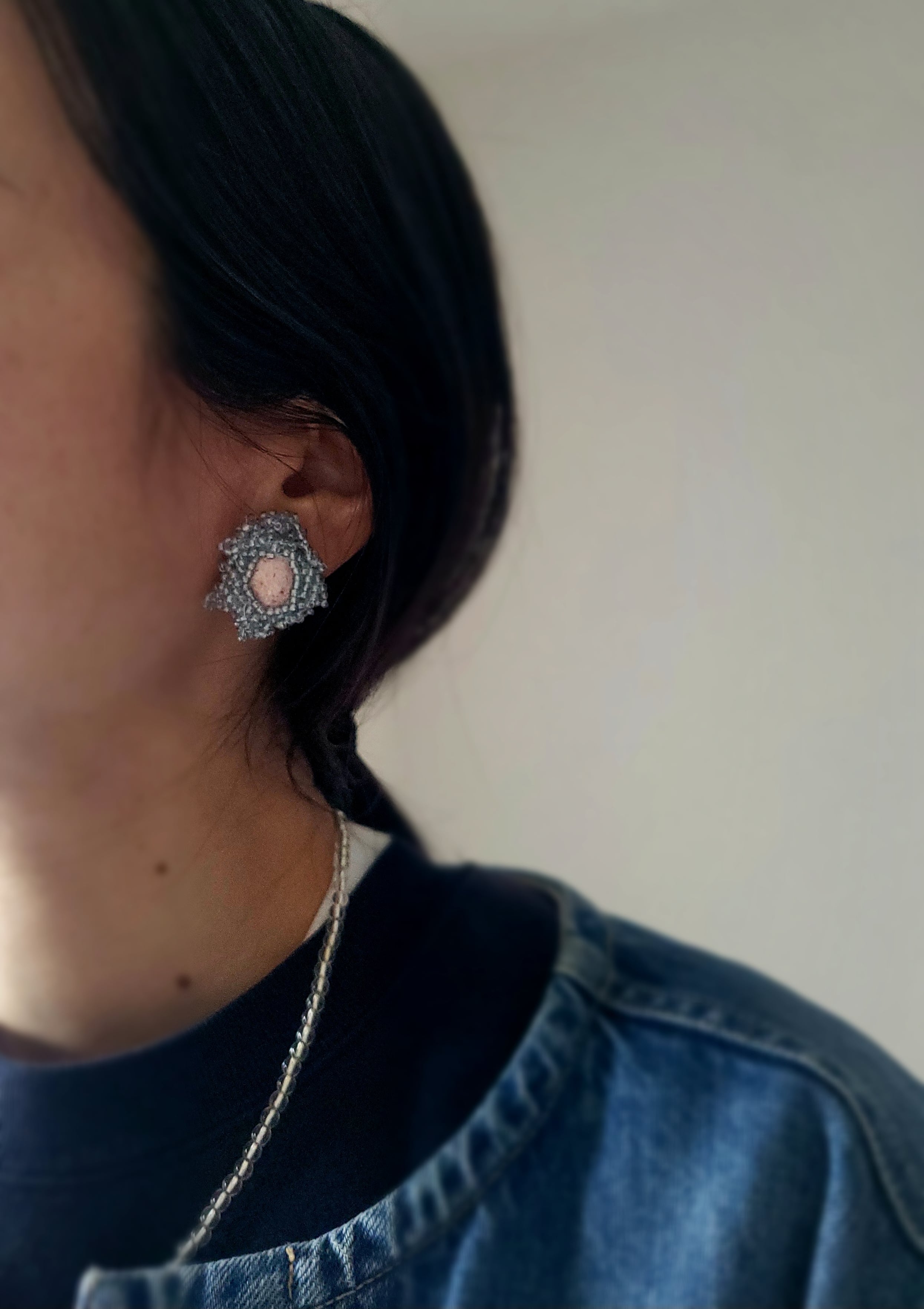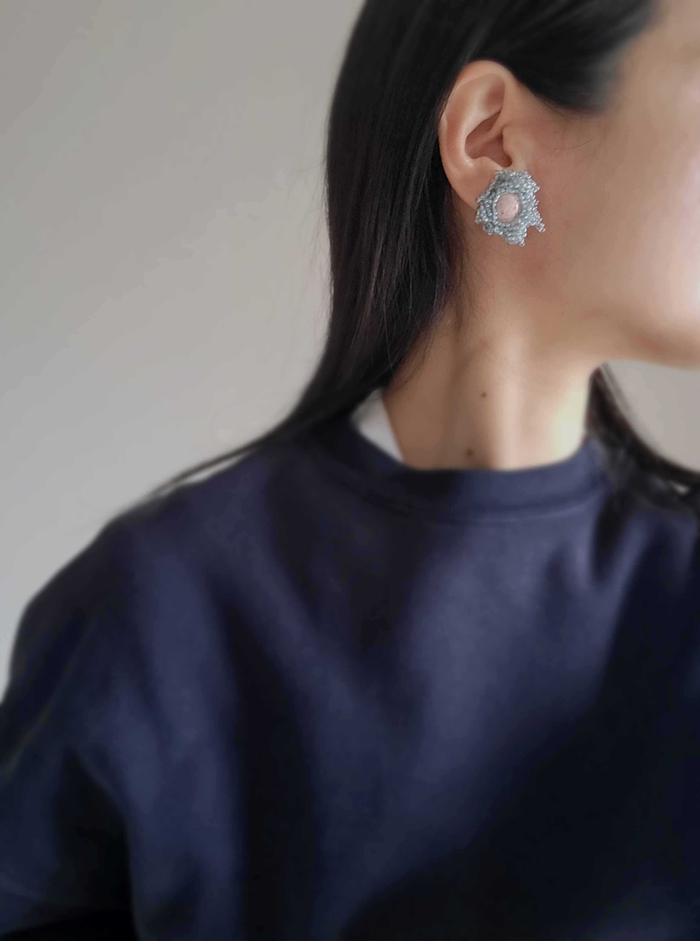 大きく咲いた花のような耳飾り。