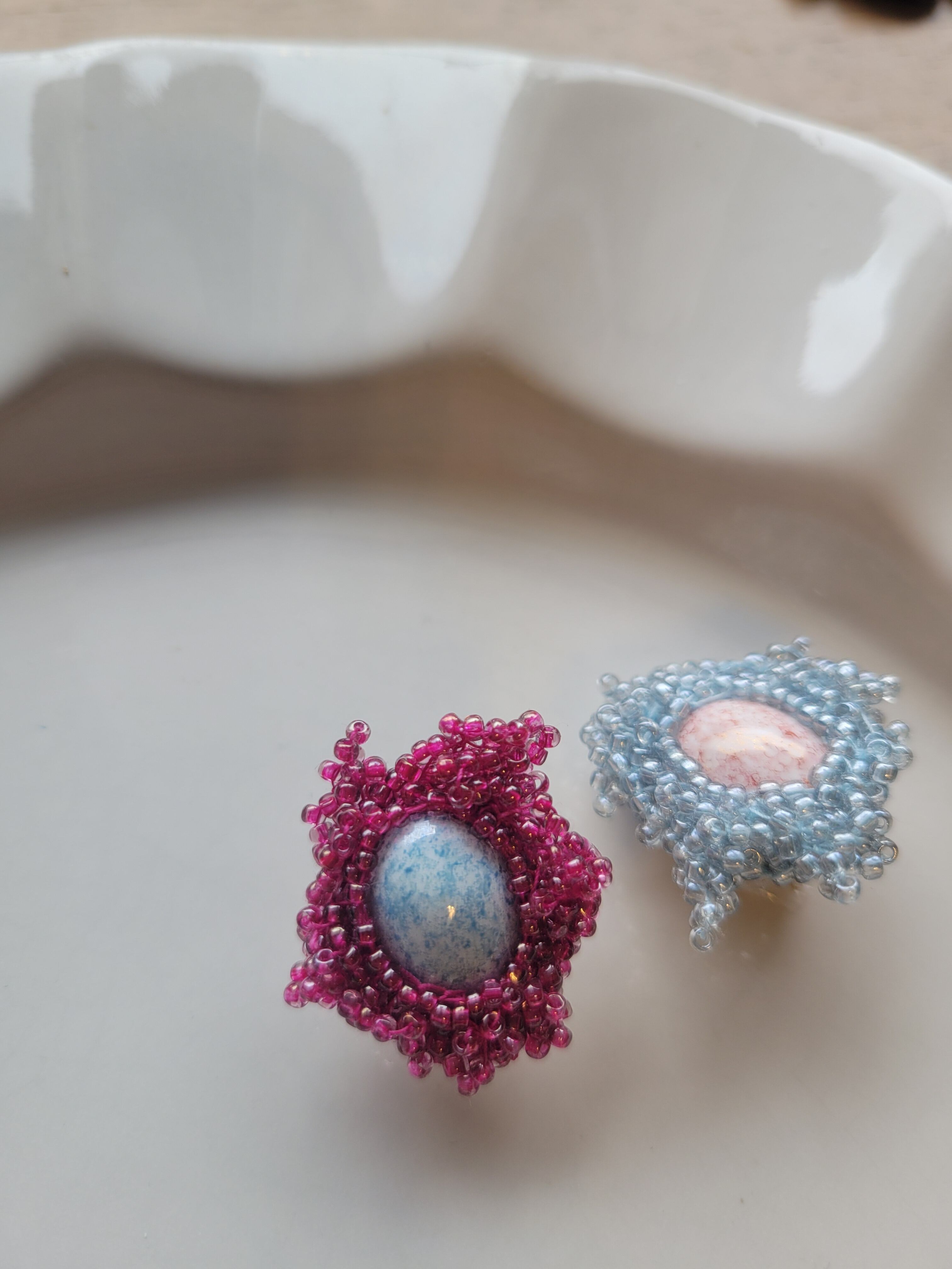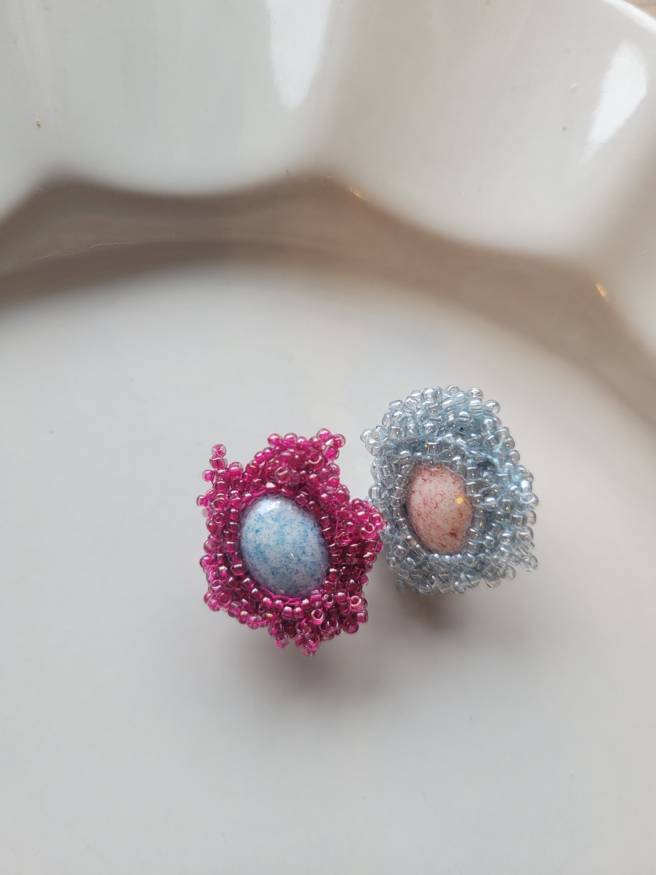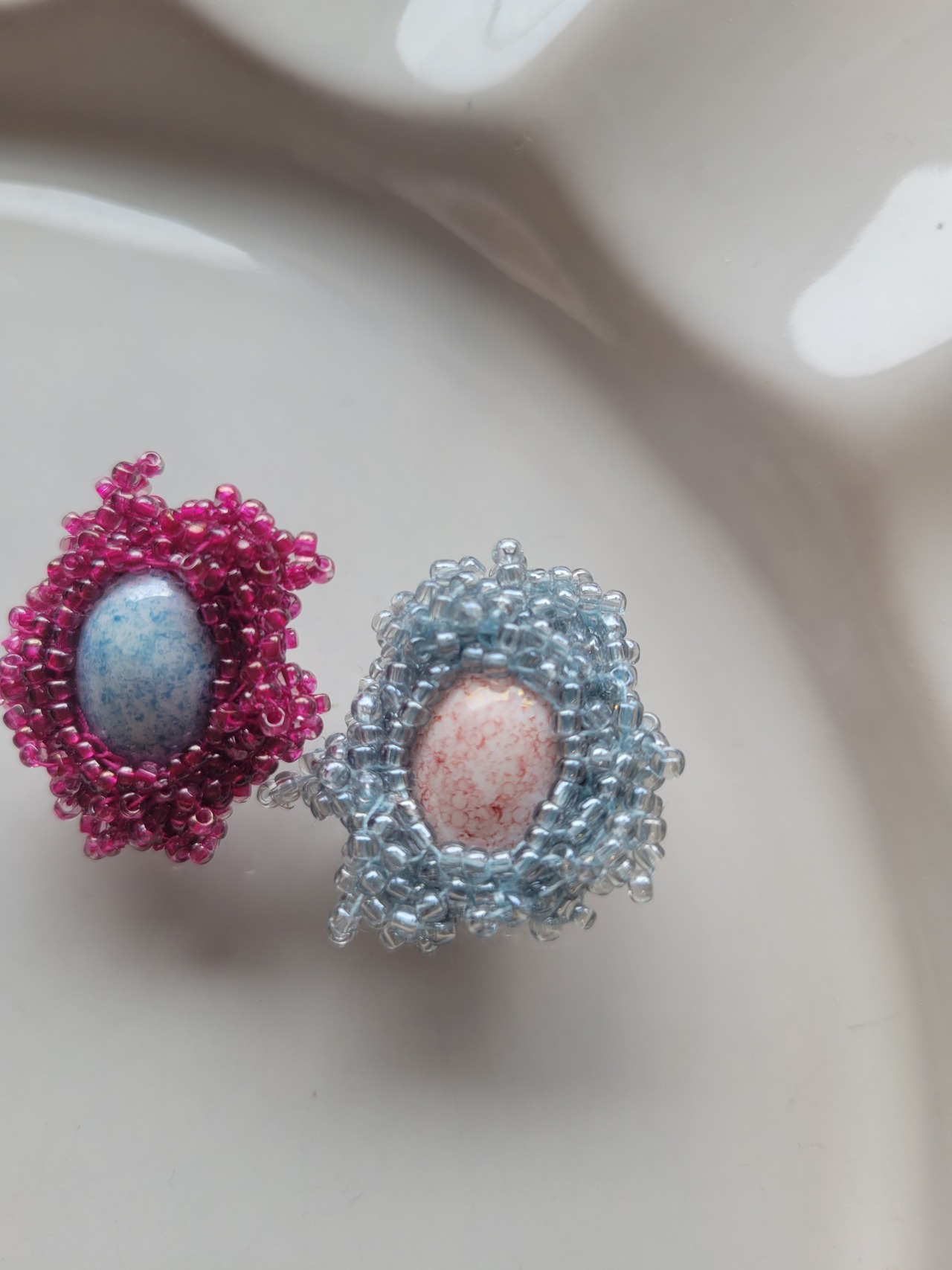 光にかざすとハッとする程美しいビーズの集まりは