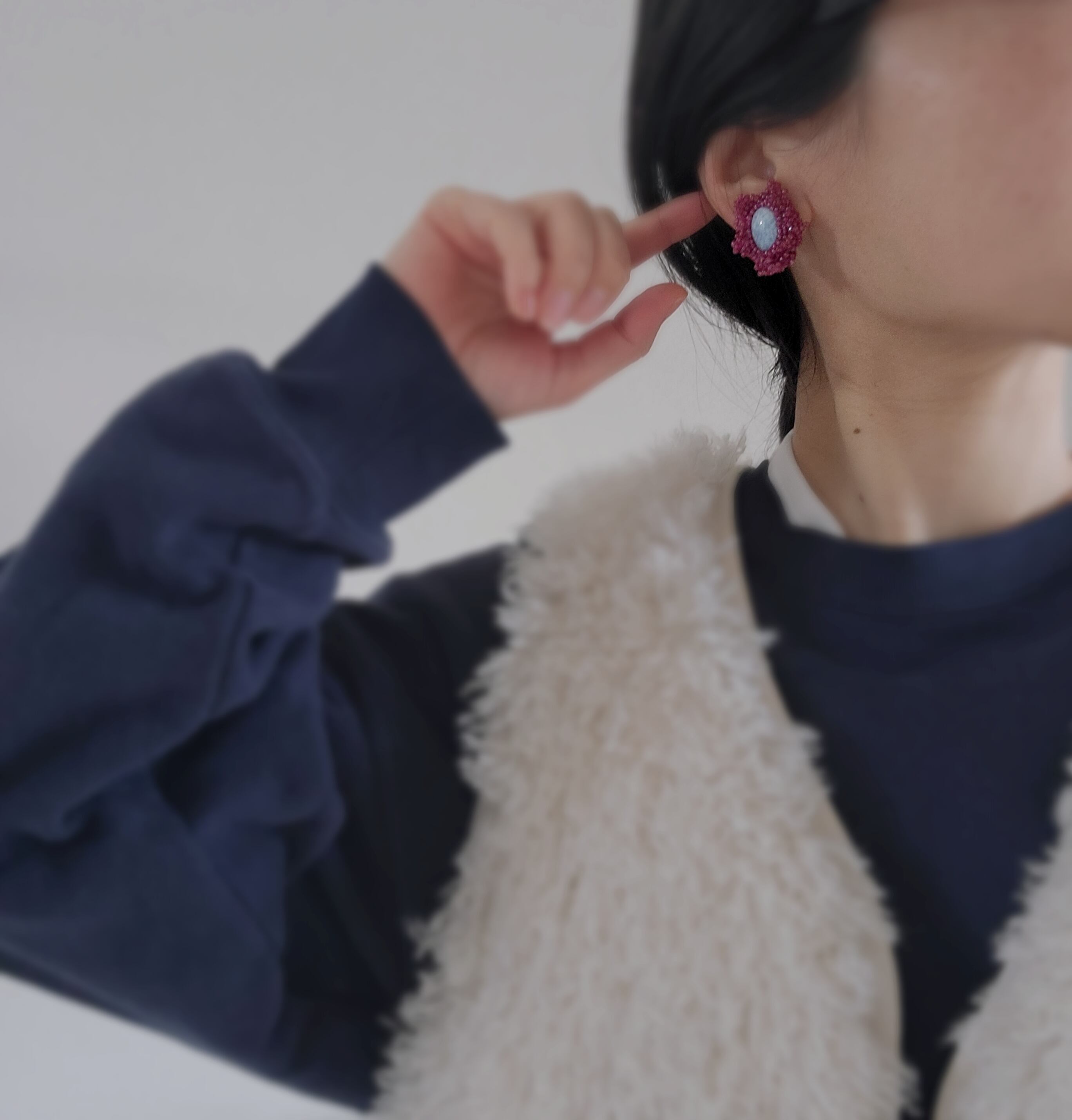 存在感溢れる耳飾りとのコーディネートを