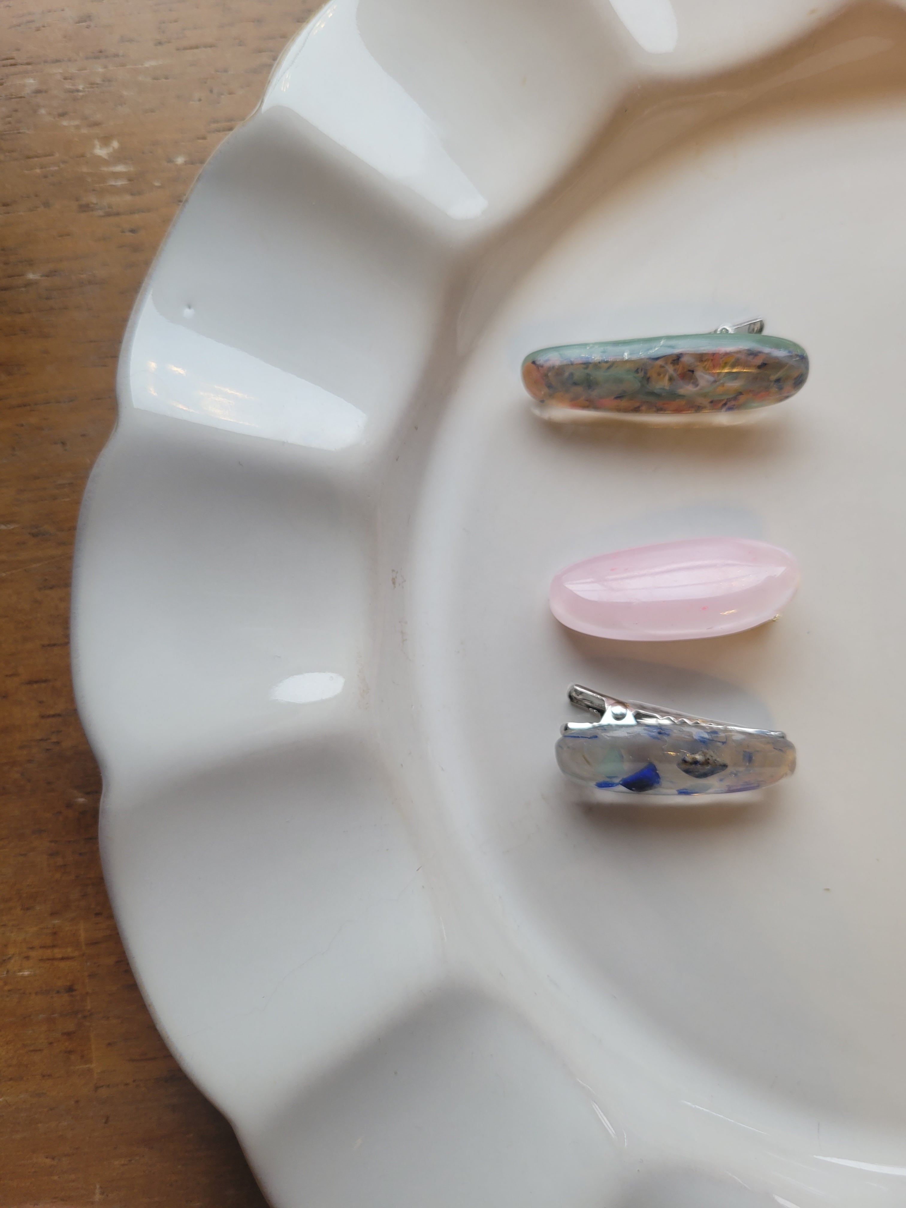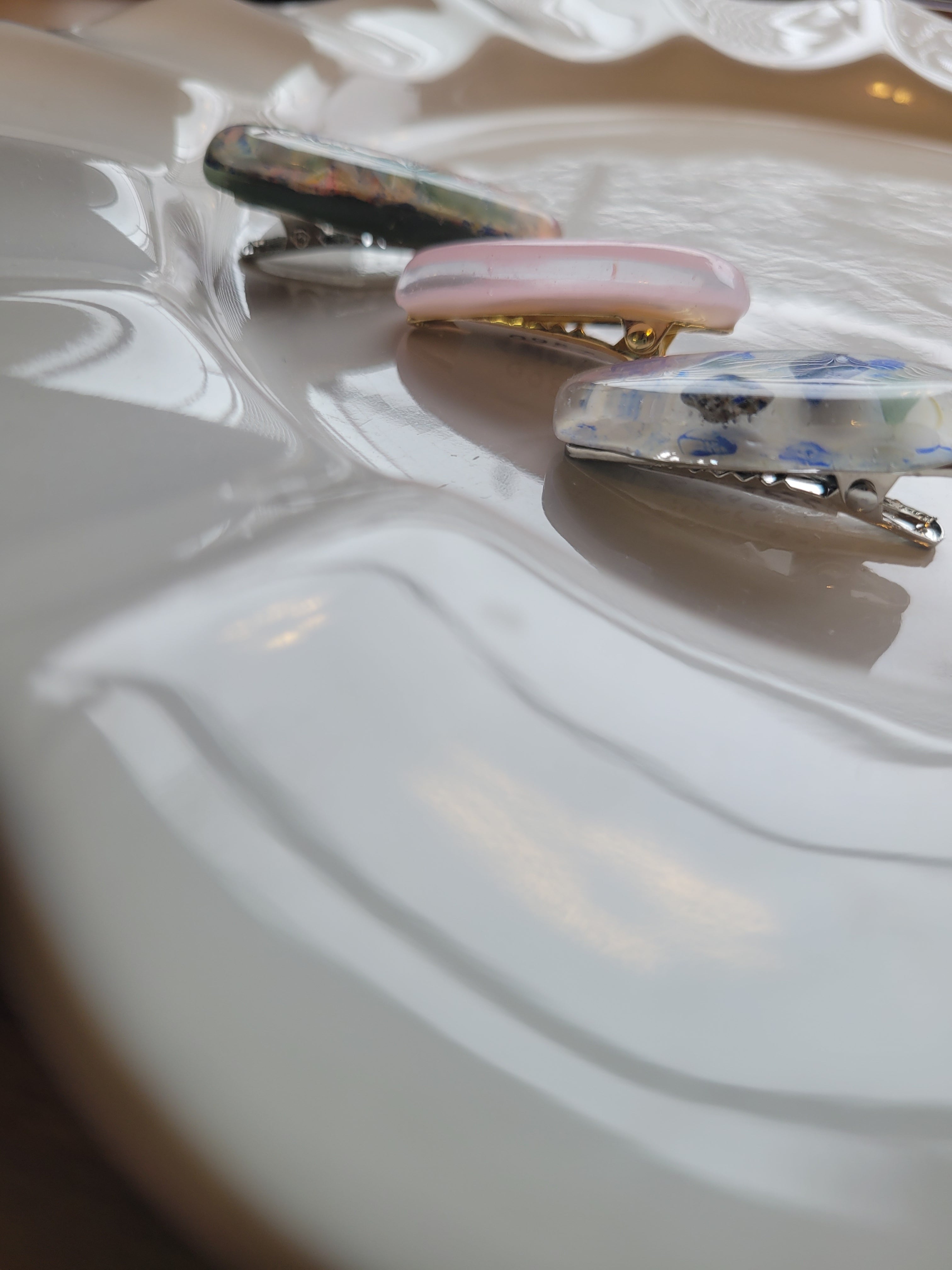 表と裏のギャップも楽しいヘアクリップです。