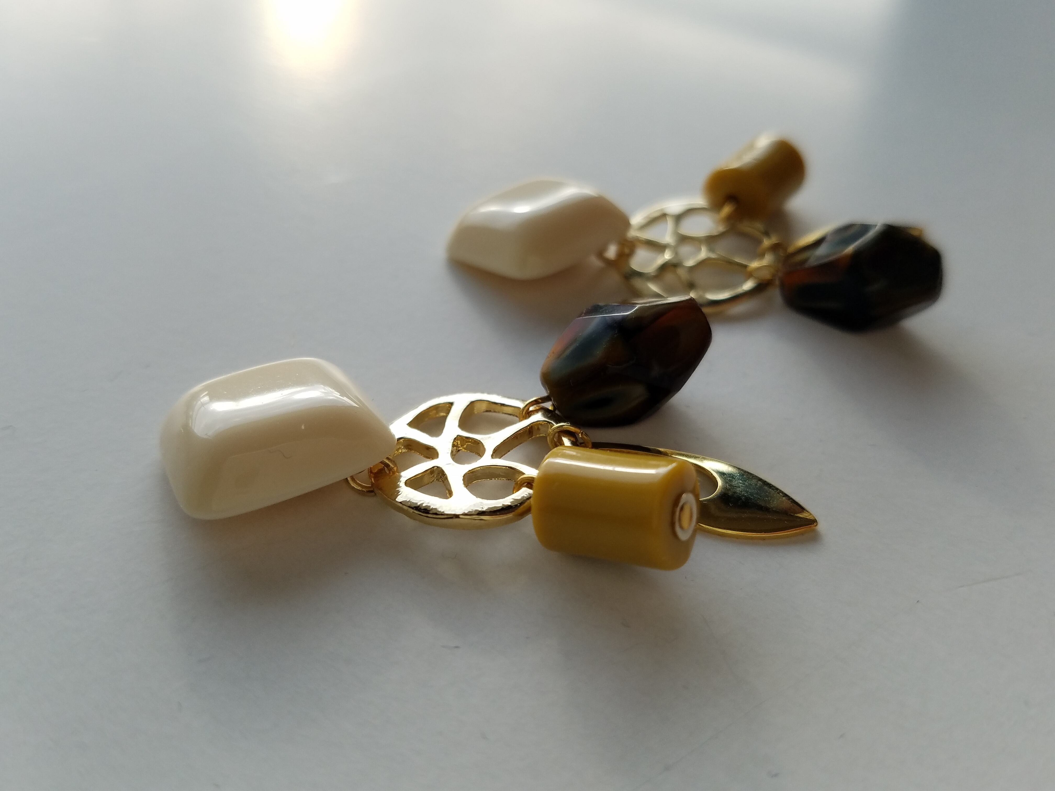 ニュアンスあるブラウンとゴールドモチーフと共に大きく揺れてアクセントになります。