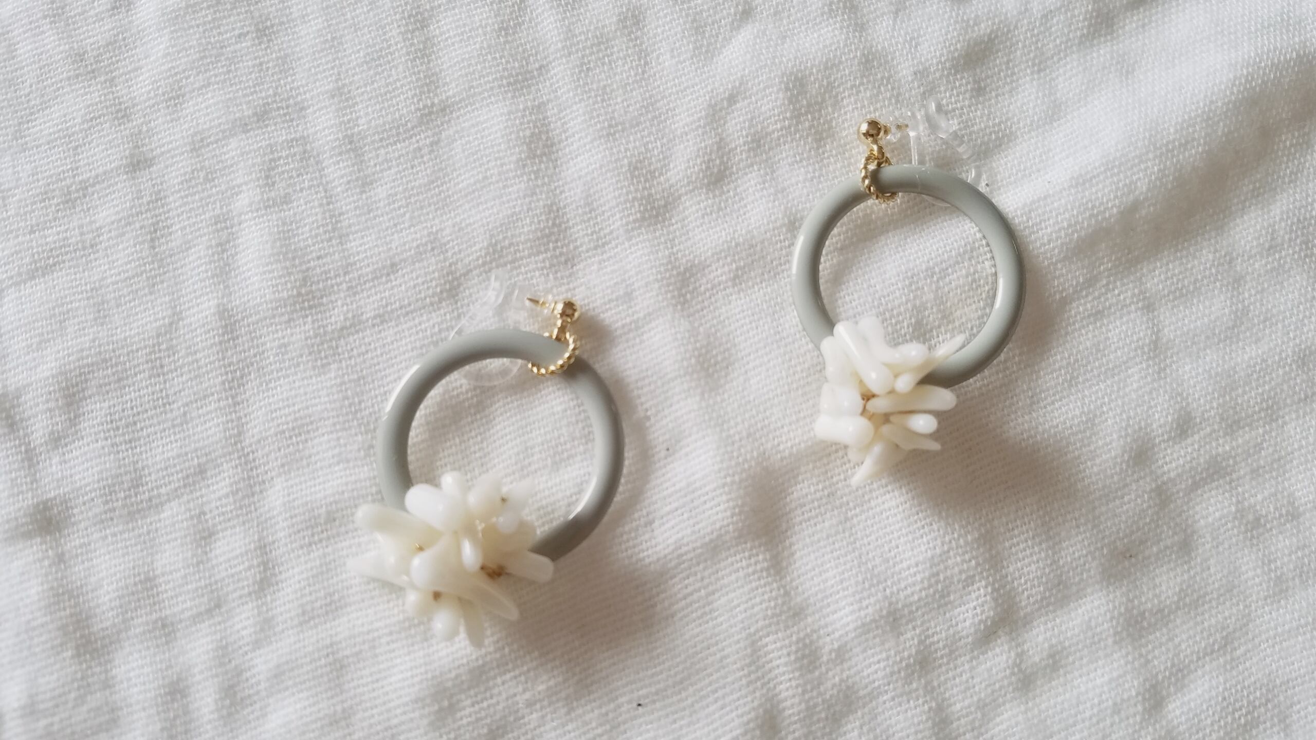 耳の近くでゆらゆら揺れる珊瑚はカラー毎に異なるデザインに仕立てました。