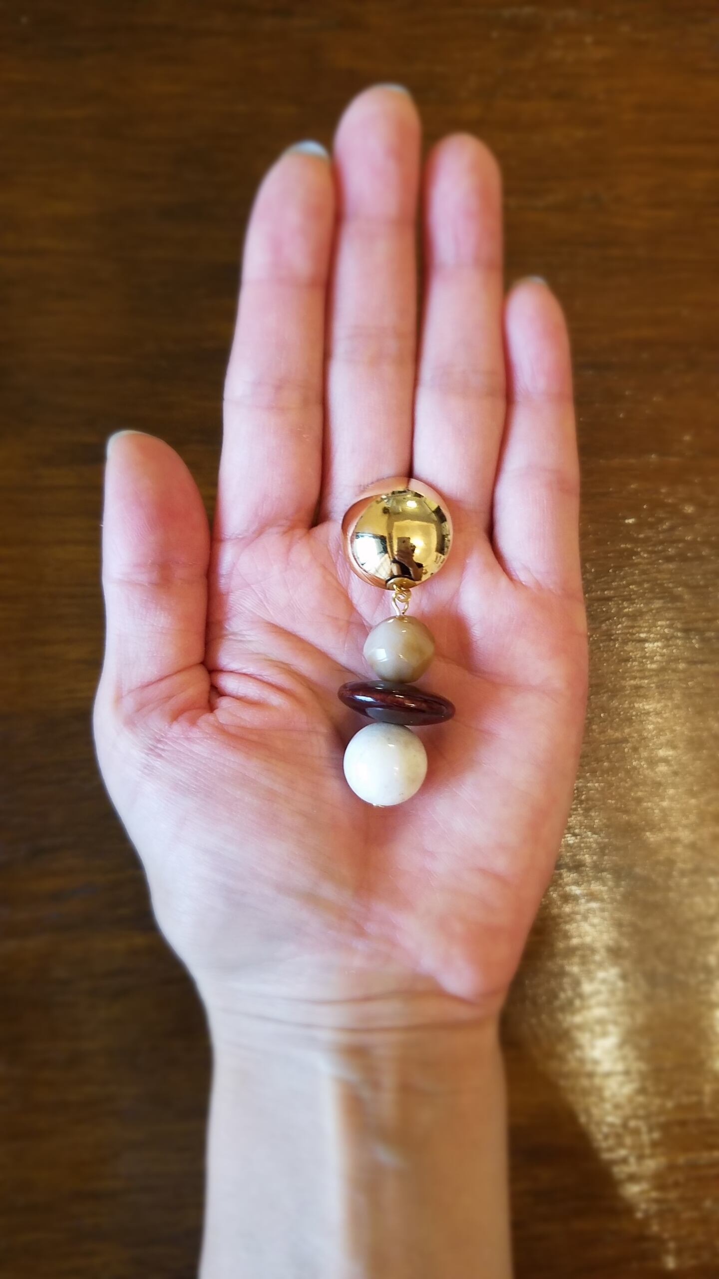 樹脂クリップイヤリング・艶ゴールド×ウッドビーズ(金具変更可)