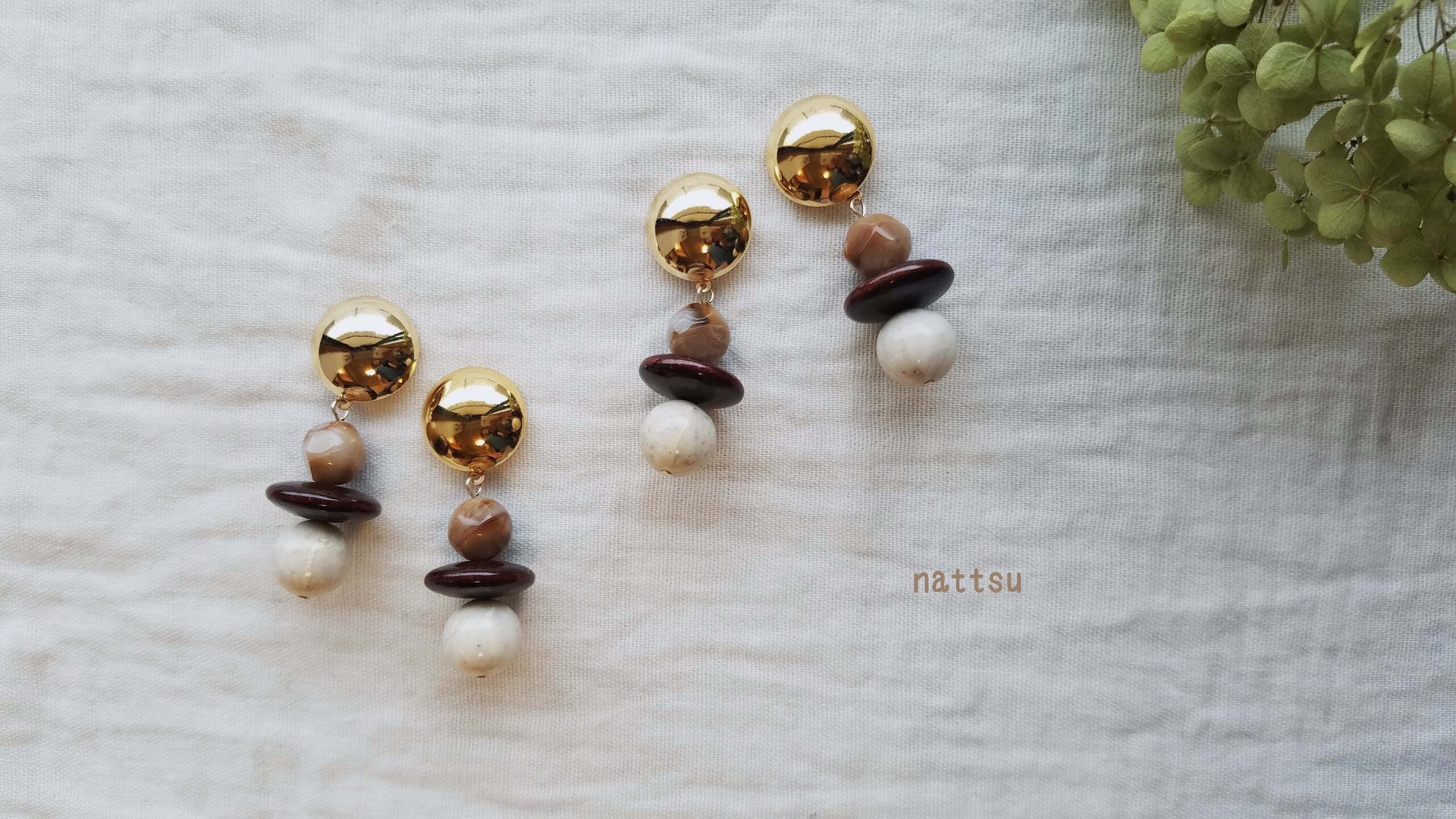 ウッドビーズやベージュで優しい雰囲気をプラス。