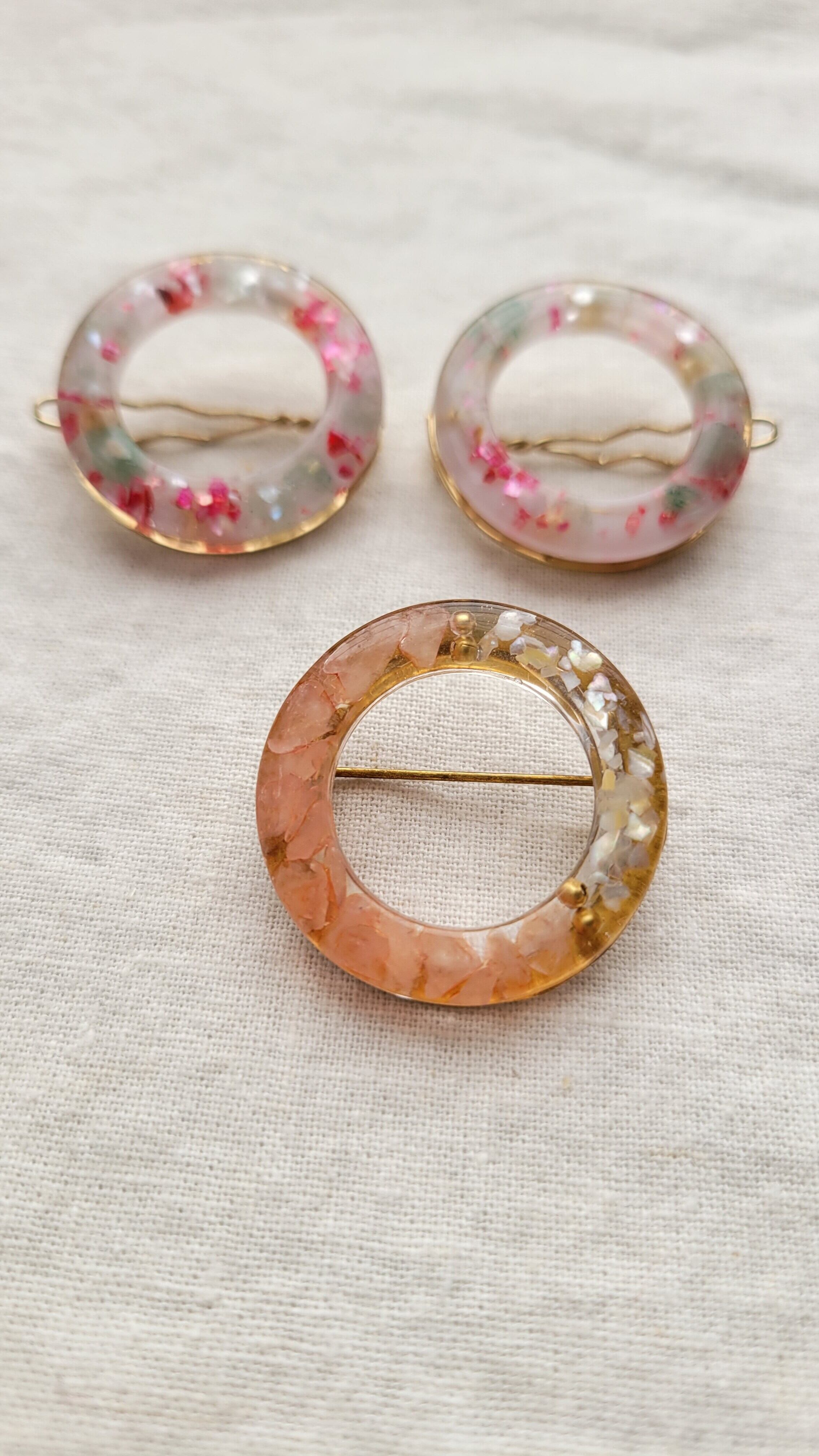 お花、シェルやストーンの華やかヘアピンorブローチ