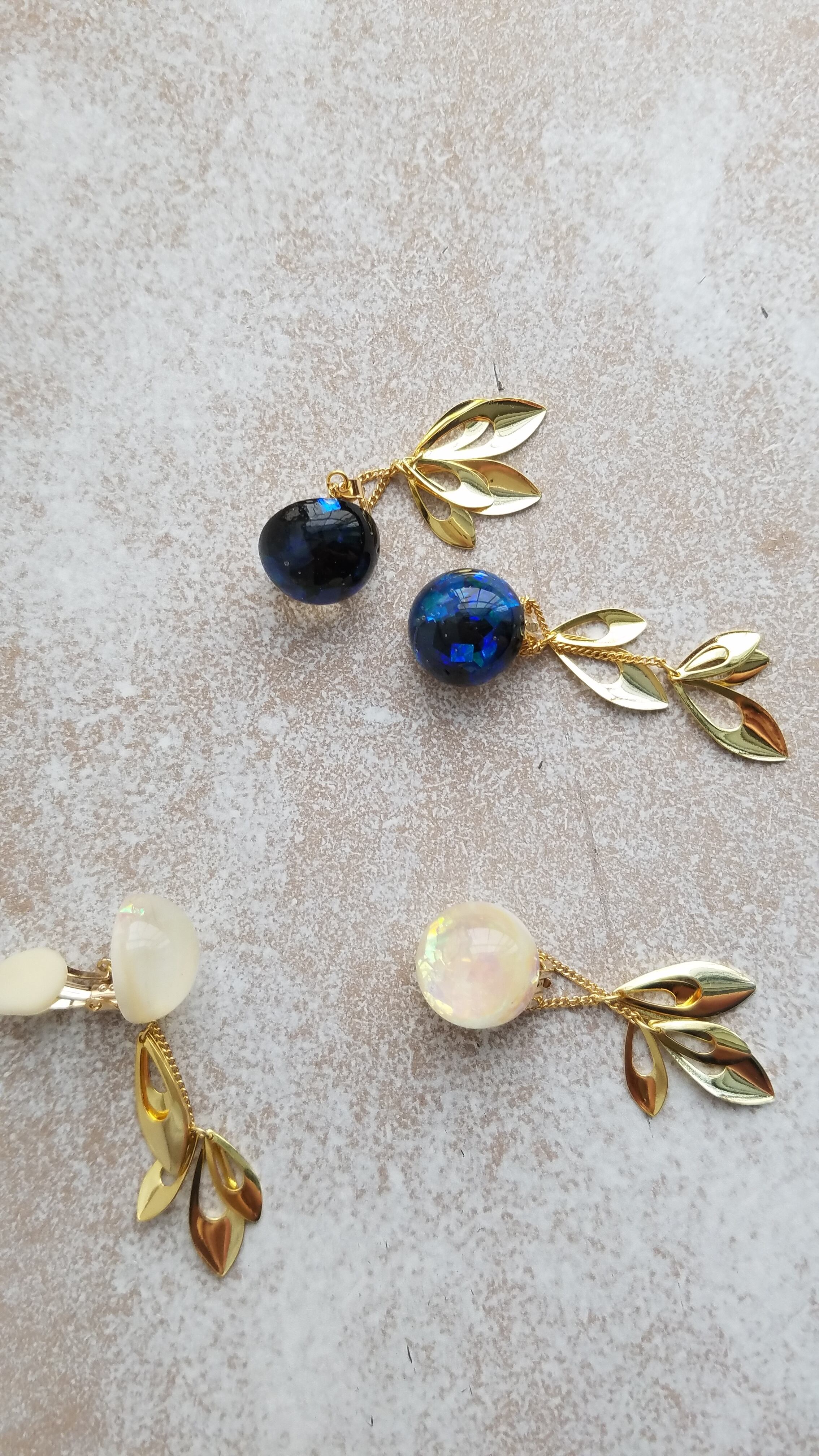 きらきらのドームモチーフからゴールドが垂れ下がり、ゆらゆら揺れるイヤリング。