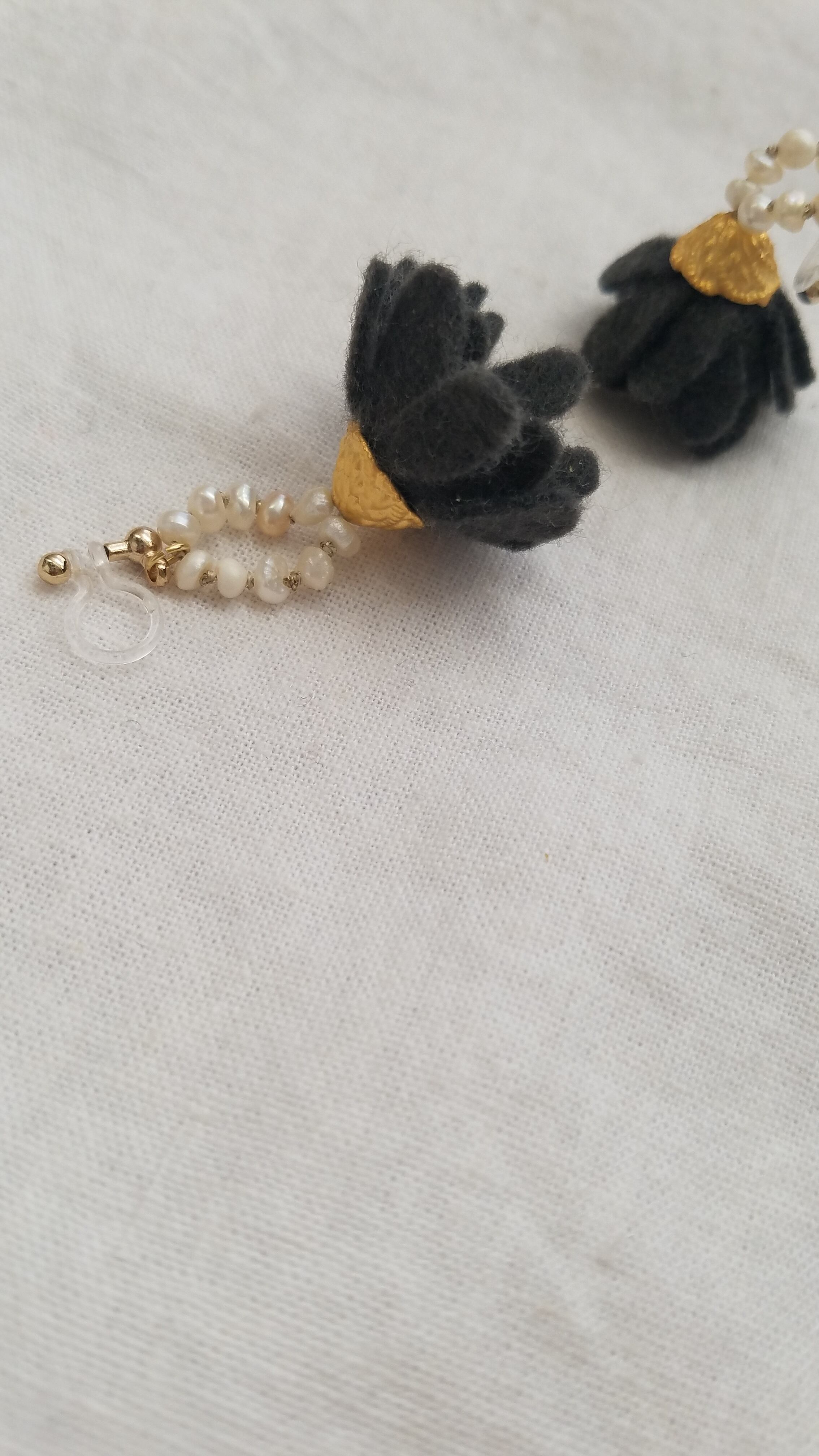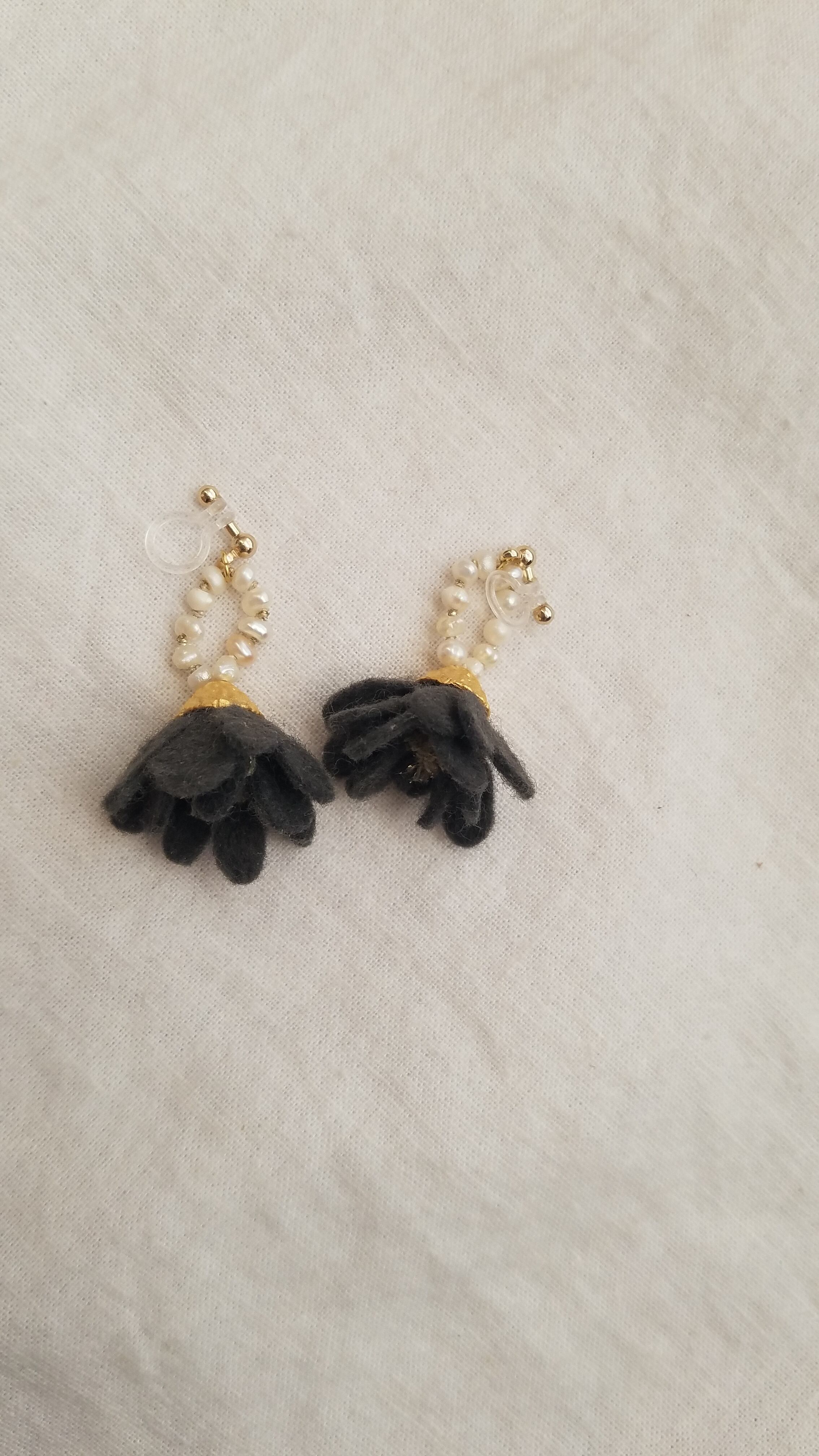 少し開いた花をイメージして出来上がった耳飾り。
