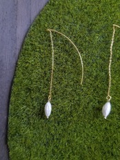 長めのチェーンの先に小さな一粒が大きく揺れる大人なピアス。