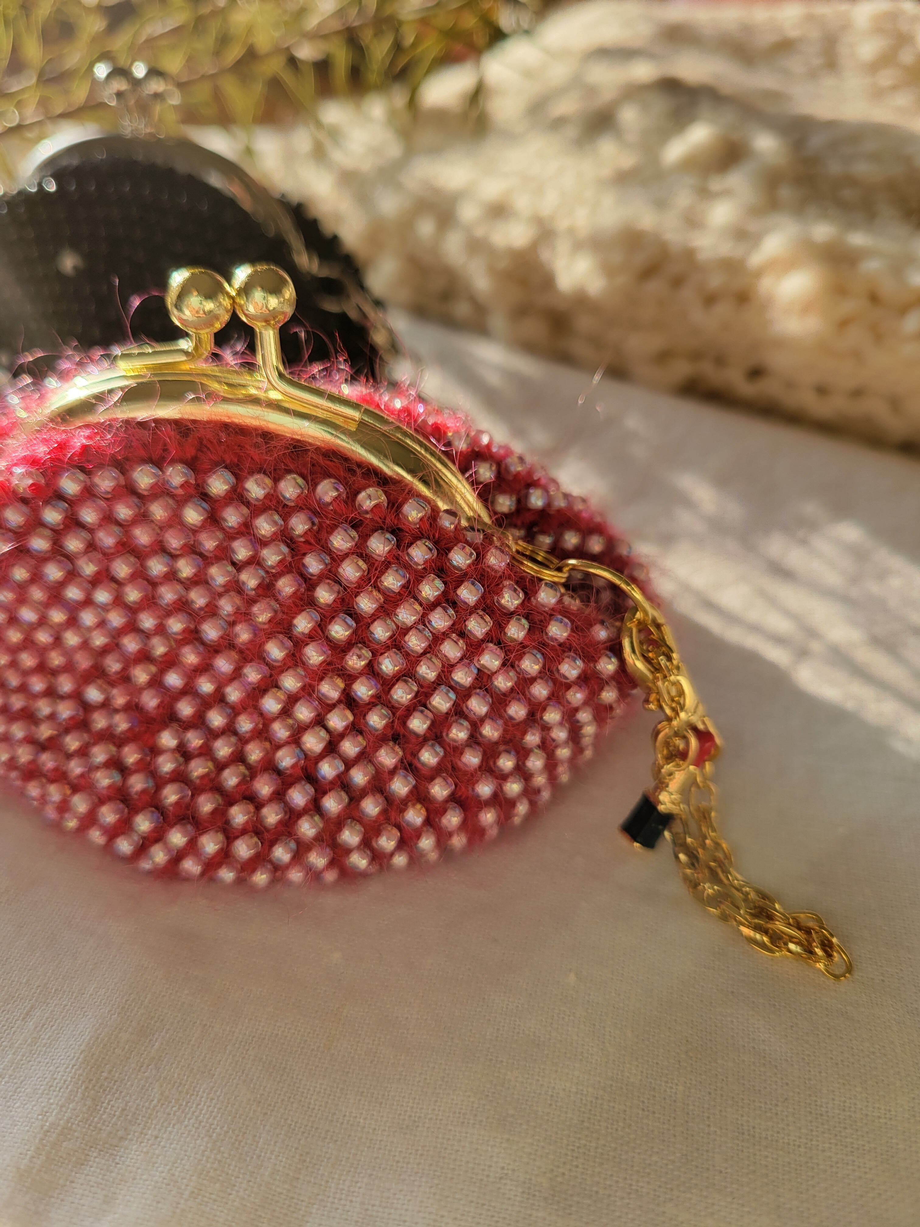 ゴールドの口金と、小さなリップのモチーフが乙女心をくすぐります。
