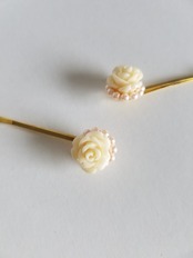 白いバラをかわいいピンクのチェコパールで囲んだヘアピン。
