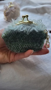 洗えるモヘアグリーン ビーズがま口ポーチ