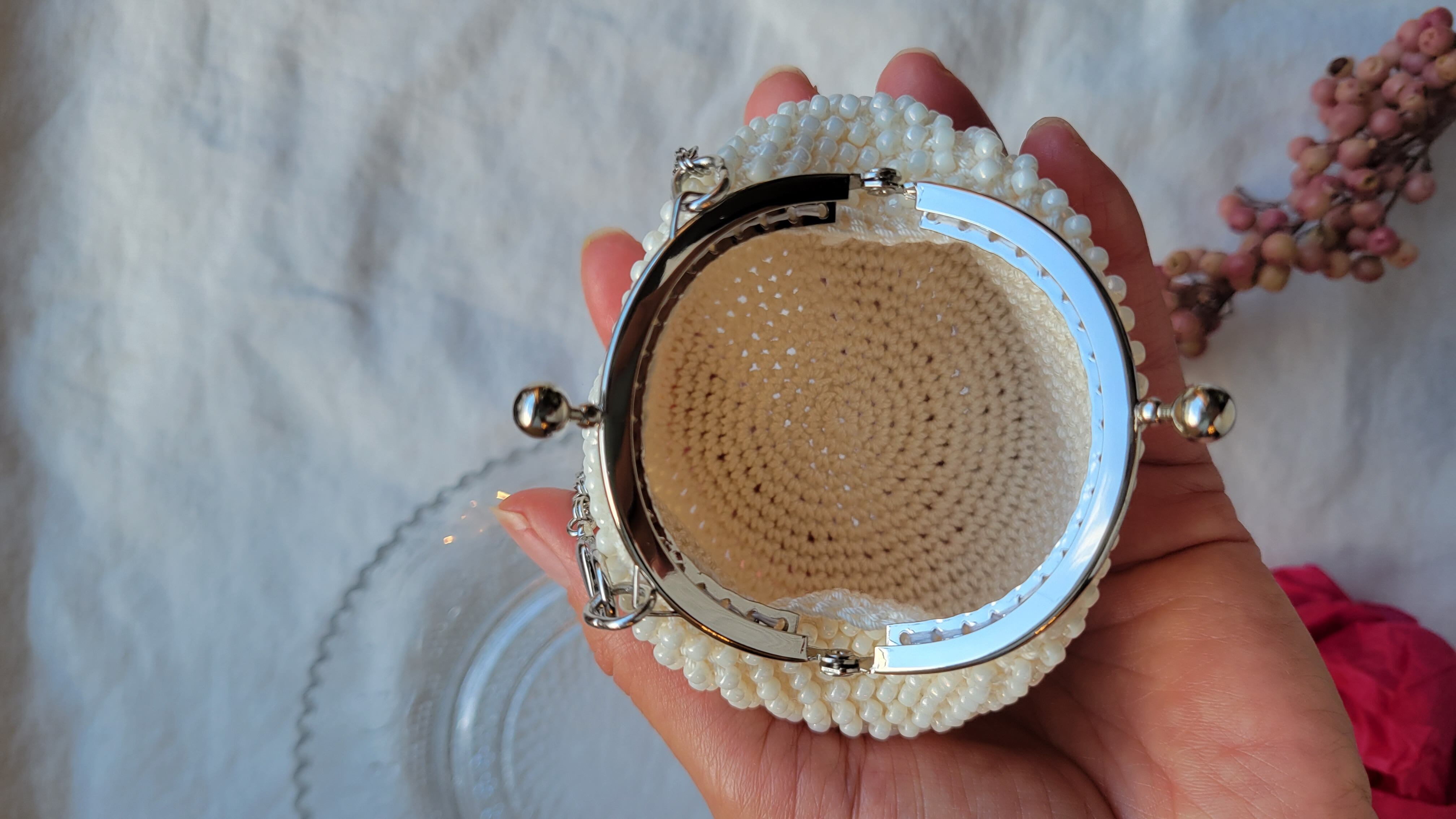 鞄やお洋服のコーディネートにもすっと馴染むけれど誰かに見せたくなるような品と華やかさも感じるポーチです。