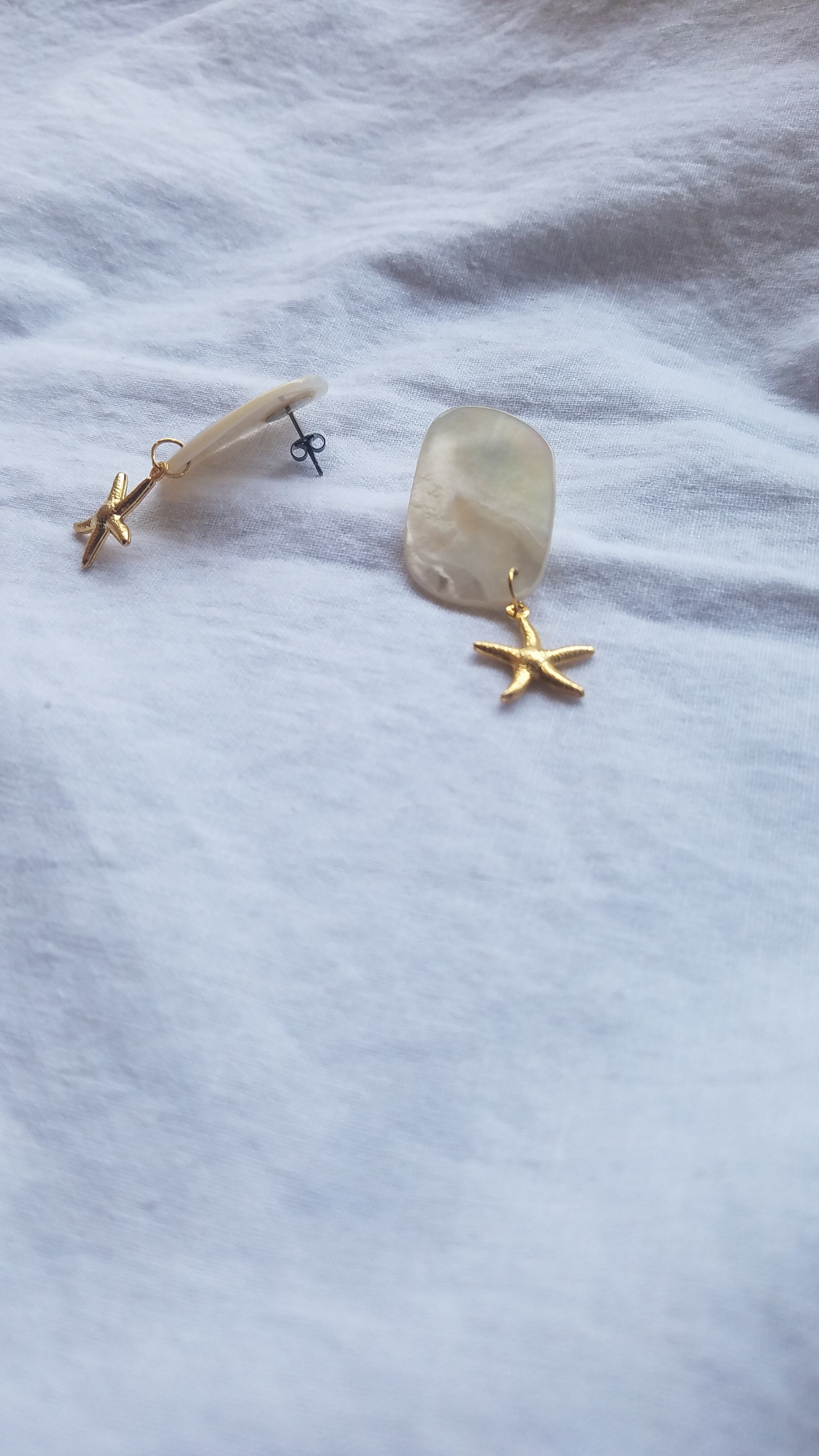 ゴールドのヒトデが爽やかな夏の耳飾り。