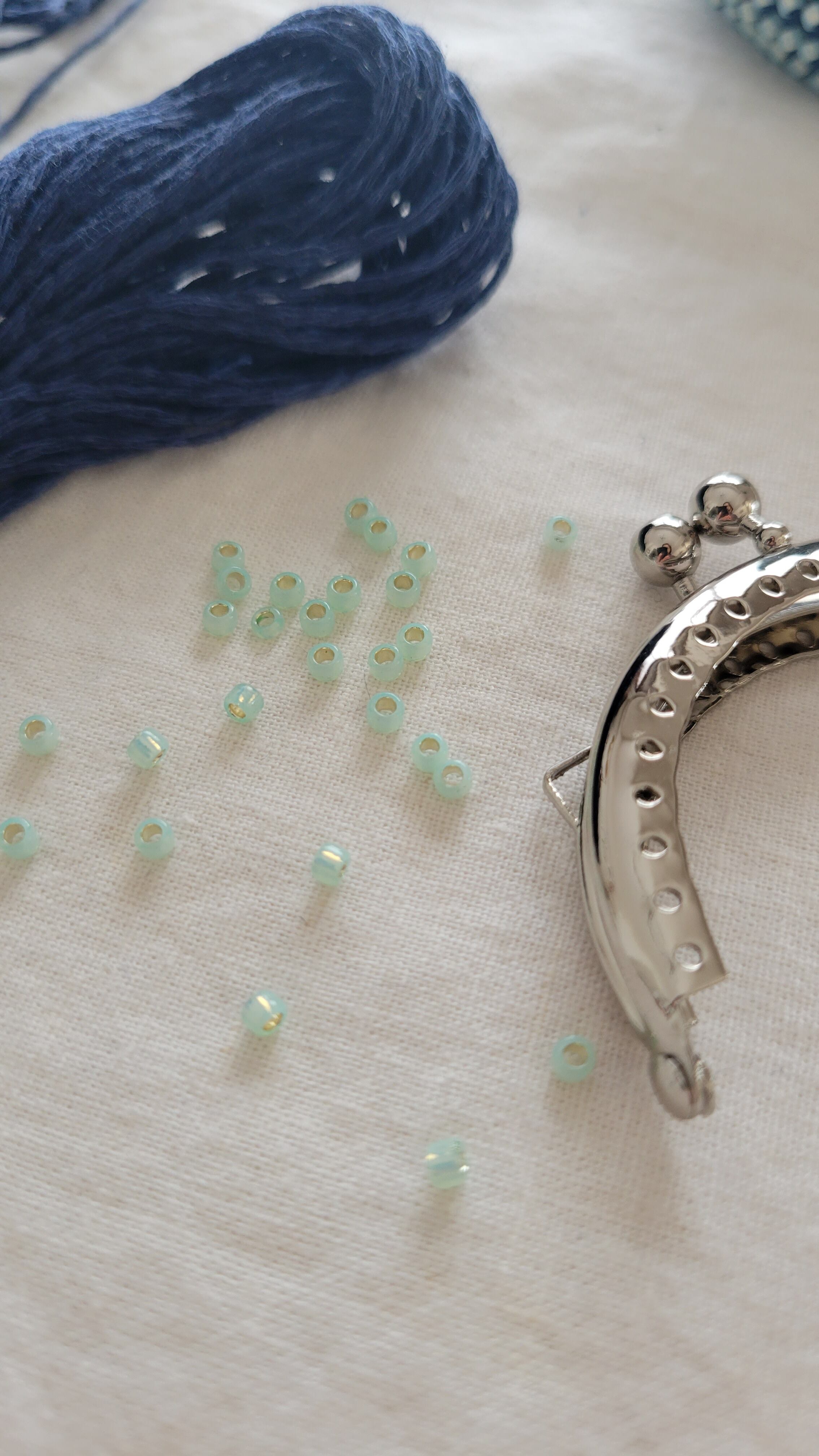 作り始めたビーズがま口です。